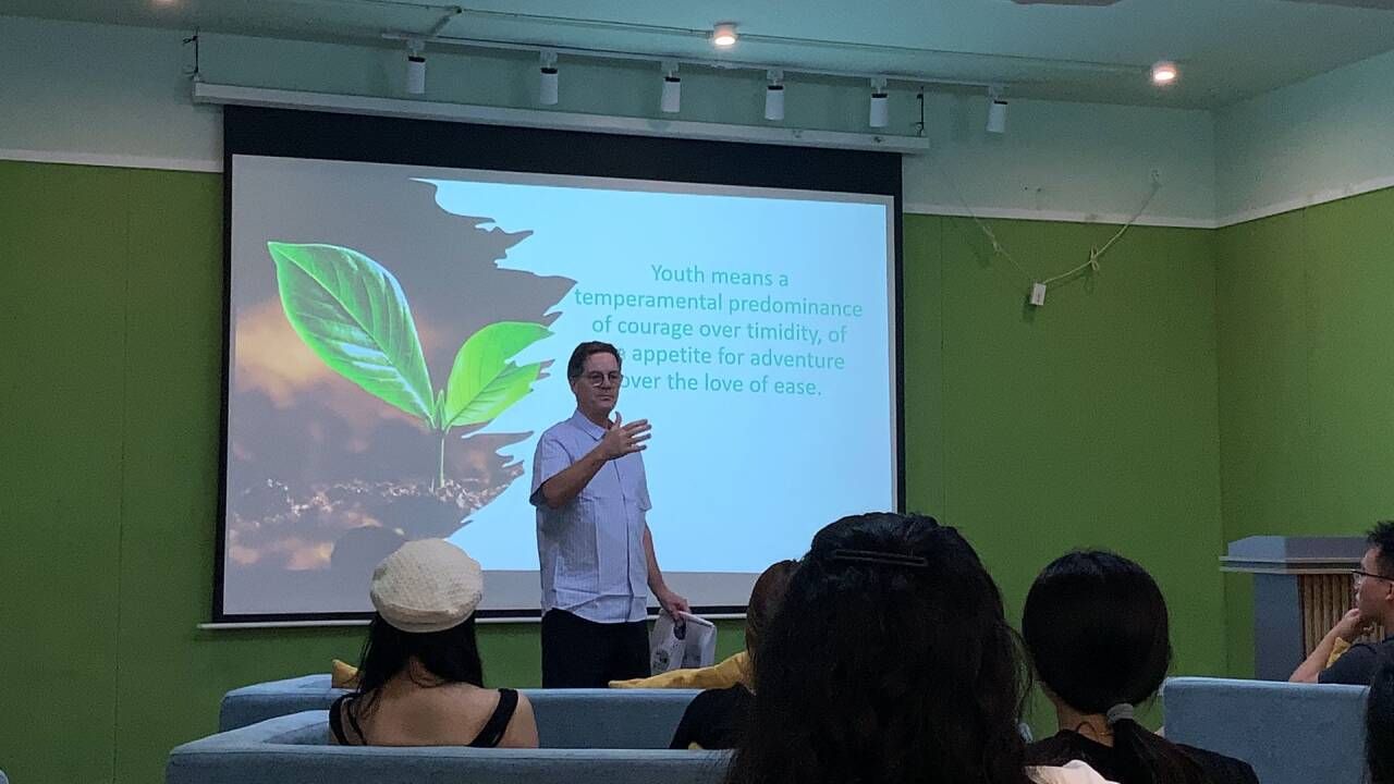 本次活动由2023年黑马风采秀冠军,李林峰同学作为英文主持,杨沁霏老师协助。李林峰同学首先请Jonathan Bodfish老师带领大家诵读了Samuel Ullman关于青春的名段:“Youth is not a time of life; it is a state of mind; it is not a matter of rosy cheeks, red lips and supple knees; it is a matter of the will, a quality of the imagination, a vigor of the emotions; it is the freshness of the deep springs of life.”