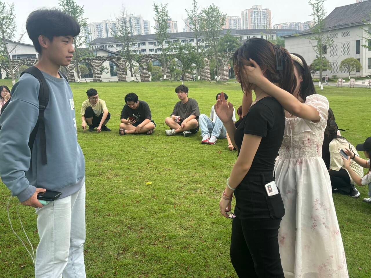 活动伊始,04122302团支书首先介绍破冰活动的流程和目的,引导同学们积极参与其中。随后,在翻译一班团支书的带领下开始本次的破冰活动。活动中同学们热情高涨并且积极参与各种互动。游戏活动期间行者公园大草坪充满欢声笑语,紧张而又不失欢乐。