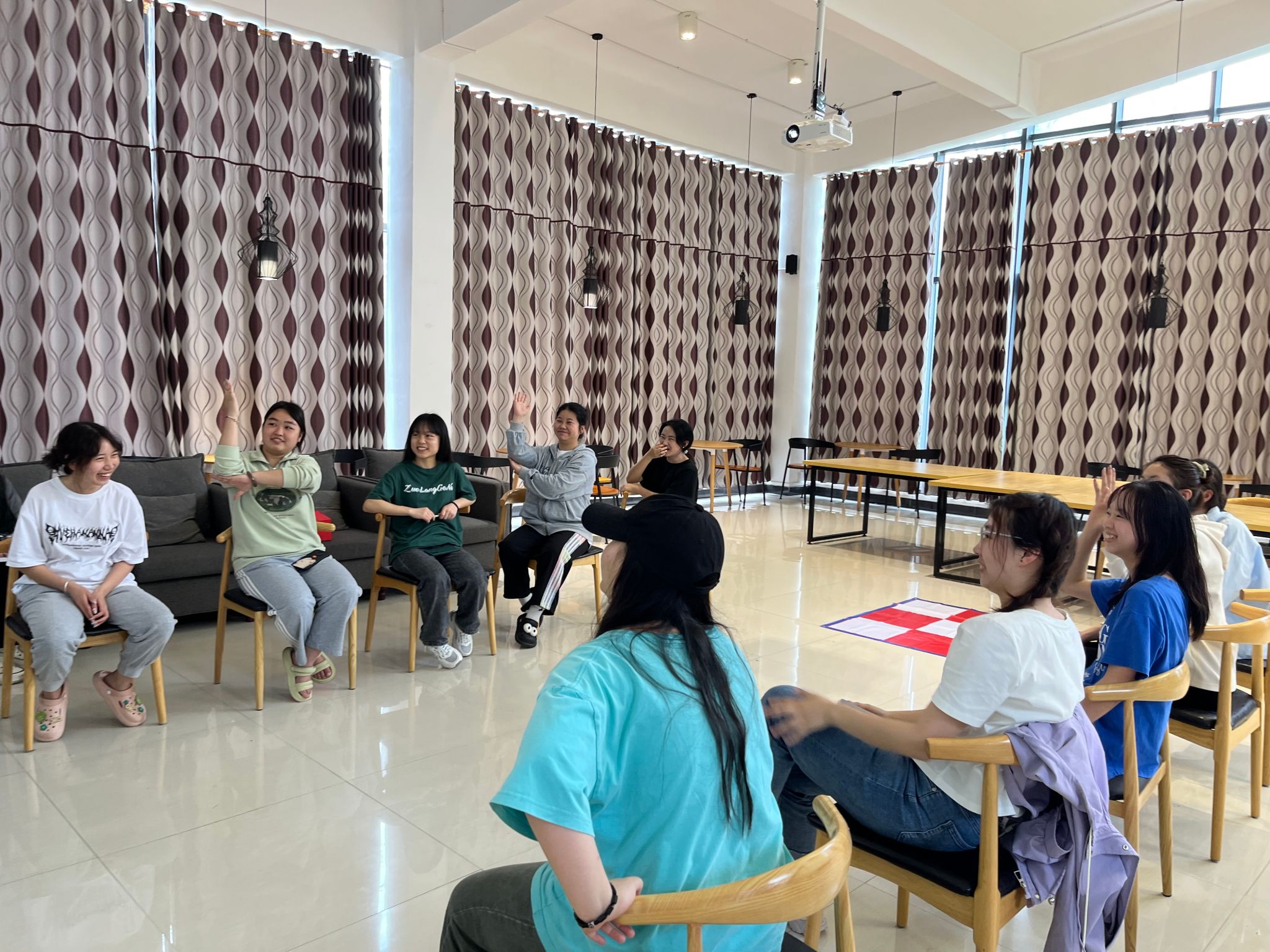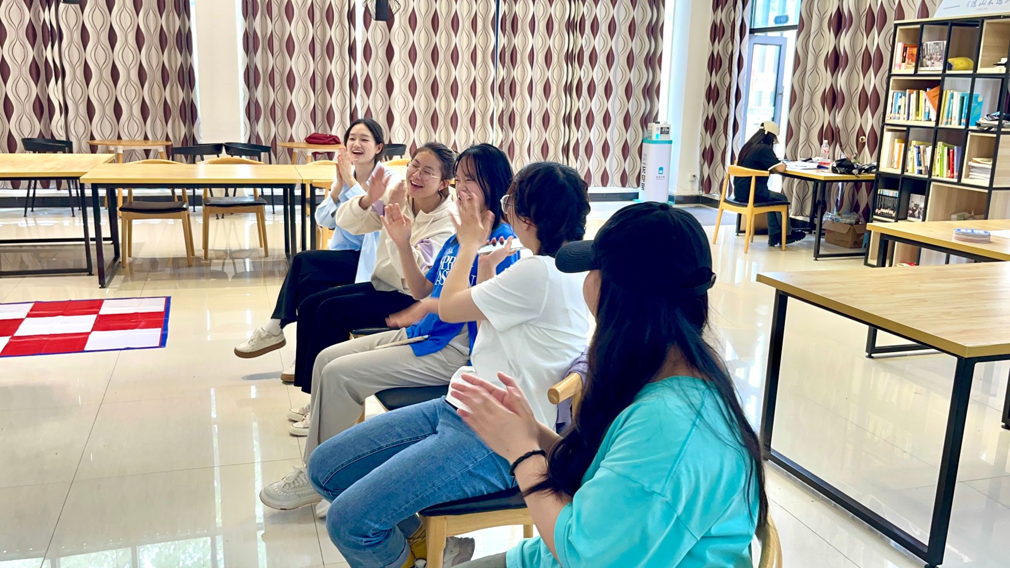 答题范围以大咖书籍知识为主,两队队员们皆屏息凝神,调动着脑海中的知识库存。得出答案之后,他们便快速举起手来,为自己的队伍“争分”夺秒。答题过程中,正确答案揭晓,参与者们皆欢呼并鼓掌。答对的队伍成员脸上洋溢着喜悦,而暂时落后的队伍也不气馁,他们迅速调整状态,时刻准备着挑战下一道题目。同学们积极参与其中,在竞答中展示自己丰富的阅读成果,同时,这也是一种对于同学们的阅读储量和团队协作能力的考验。