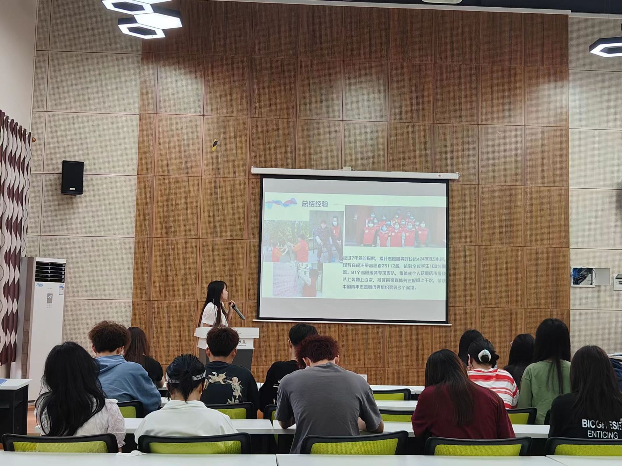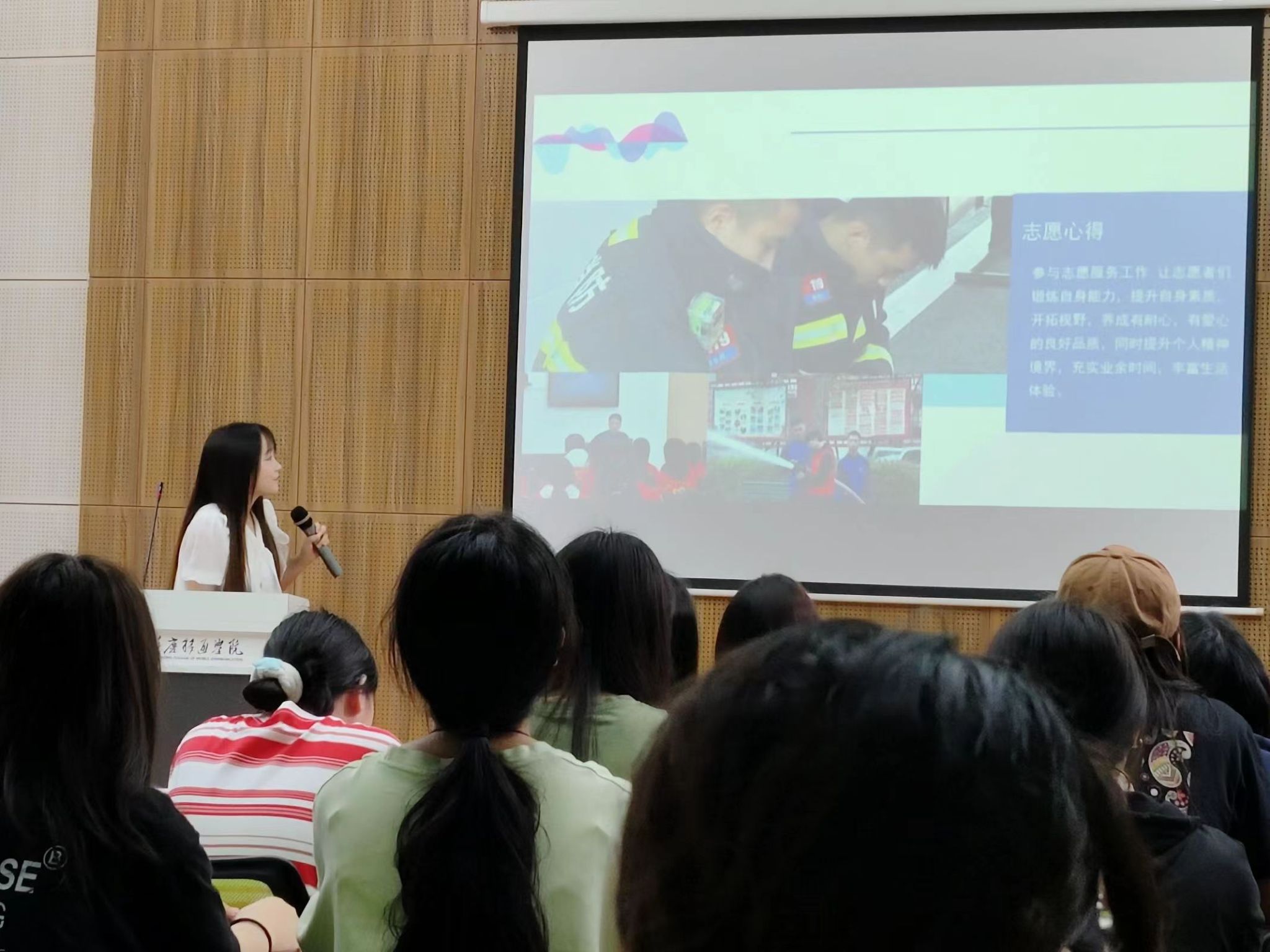 志愿服务是社会文明进步的重要标志,是普通人奉献爱心的重要渠道。“青春的火热就是温暖社会”,秋荣学姐首先介绍志愿服务工作内容,她希望同学们积极参加此系列活动,锻炼沟通能力,升华奉献精神,为同学们内心播撒下美好种子,同时为学校志愿服务创造良好的环境。