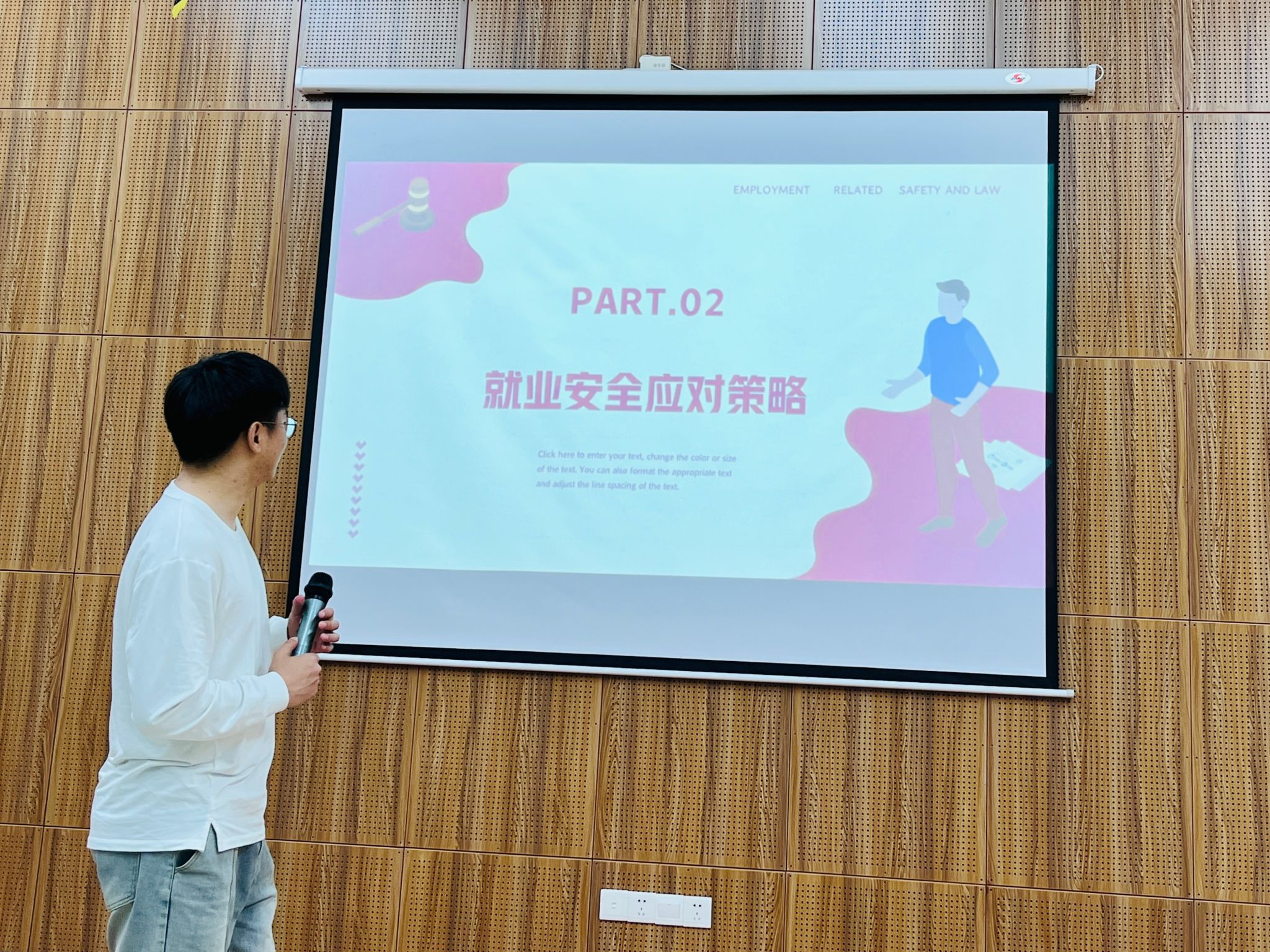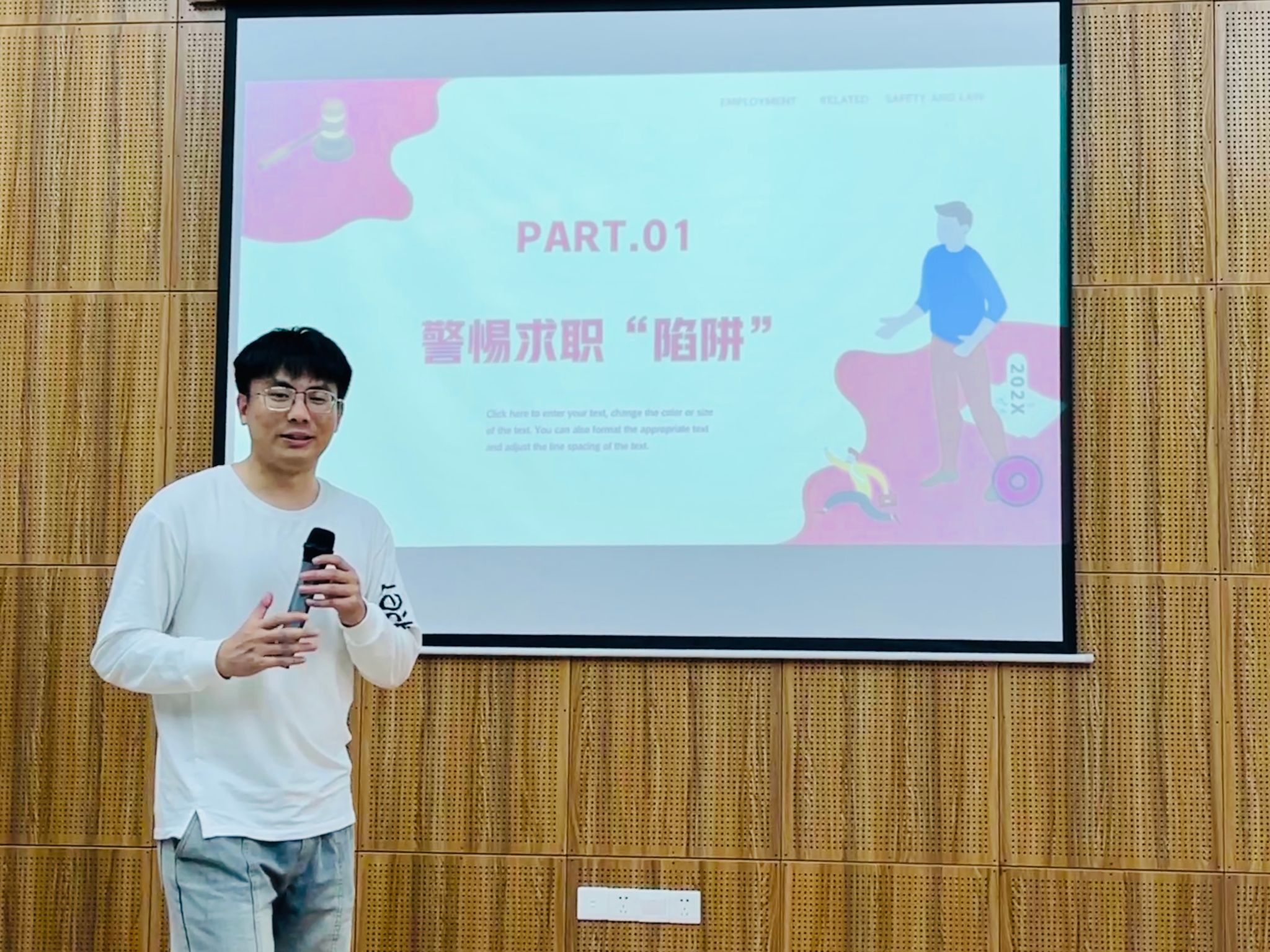星河为路,此去乘风,遨游在题海里的日子终会摘下璀璨繁星。夏天的相遇,也即将在夏天告别,在这个离开校园“舒适区”,与社会接轨,迎接未知的阶段中,为解答学生就业及权益等问题,外国语学院2020级辅导员兰鹰老师、阳果老师于2024年4月12日19:00,在天渠111报告厅开启就业政策与安全教育年级会。