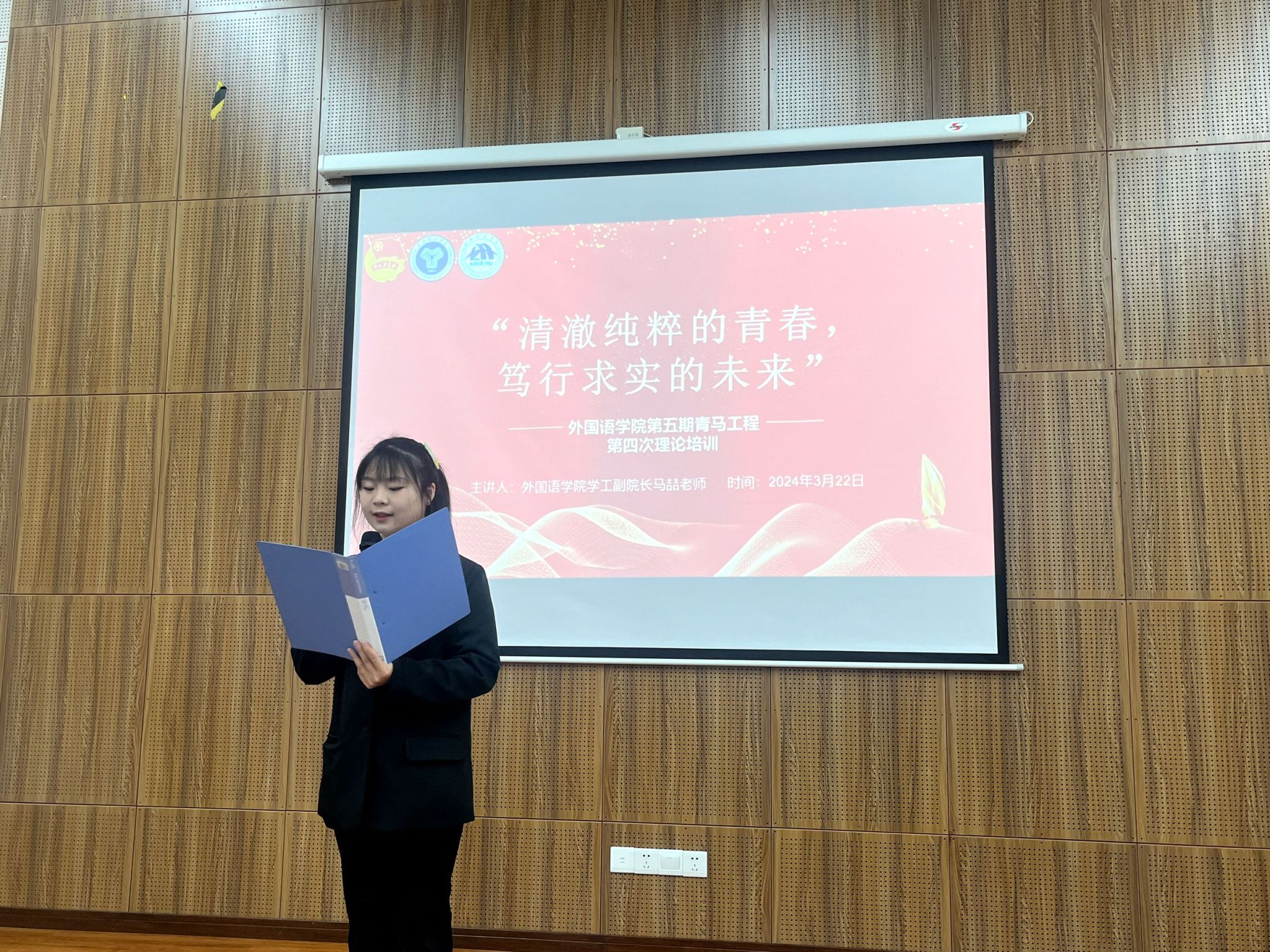 为引领青马学子巩固思想根基,以正确认识“坚持理想信念,争做时代好青年”为主题,对“四有青年”——有理想、有道德、有文化、有纪律展开培训。特外国语学院团总支于3月20日12:30,在天渠111报告厅成功开展“清澈纯粹的青春,笃行求实的未来”外国语学院第五期青马工程第四次理论培训暨外国语学院学生会功能团支部主题培训,外国语学院2020-2023级全体团支书、外国语学院学生组织第四届一任全体干部共计50人参加。