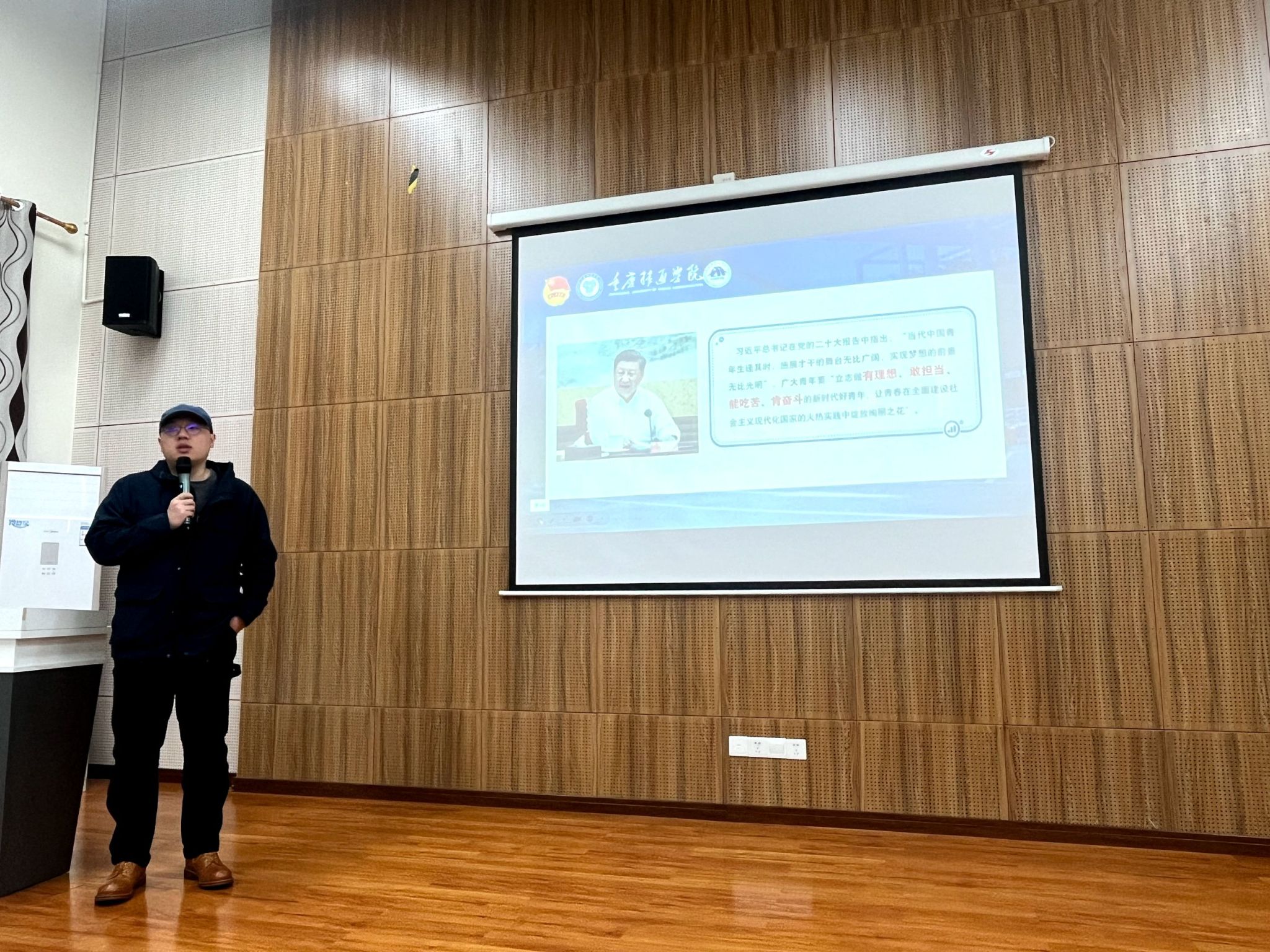 征程万里风正劲,策马扬鞭正当时。本次培训有幸邀请到外国语学院副院长马喆老师进行本次培训,习近平总书记提出新时代好青年标准是基于历史传统的赓续、中国式现代化征程对青年的必然要求。马喆老师也对习近平总书记的讲话进行深入讲解,并以“信念坚定,目标明确”“砥柱中流,舍我其谁”为关键词为青马学子们展开叙述。马喆老师以个人的亲身经历为例子,讲述往届优秀学长在大学学校生活中身兼多重身份——年级长、团总支学生副书记等,但他以“敢担当”的态度在同届学子中脱颖而出,在成功之路上一步一个脚印,最终实现人生理想。马喆老师用榜样的例子鼓励青马学员要敢于担当,以端正个人态度,坚持奋斗为方向,逐步实现自己的理想。