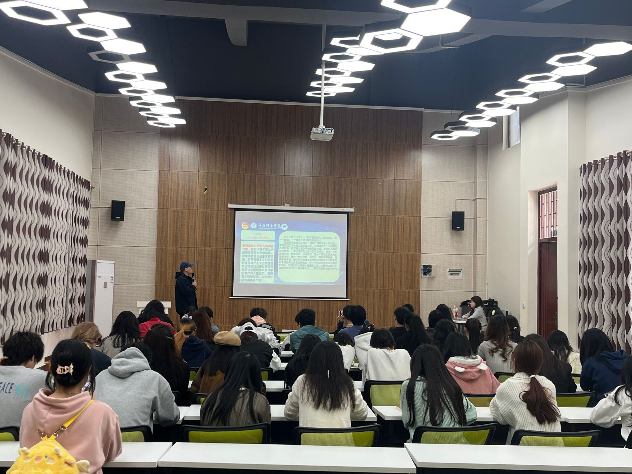 学好本领,练就吃苦“功夫”。带着“吃苦”的革命精神吹响“奋斗”的青春号角,以挺膺担当的姿态奔赴“青春之约”。马喆老师同样以亲身经历的方式为导入,希望通过他身边真实发生的实例鼓励同学们,并讲述在大学期间他所为进一步发展个人而做出的努力。