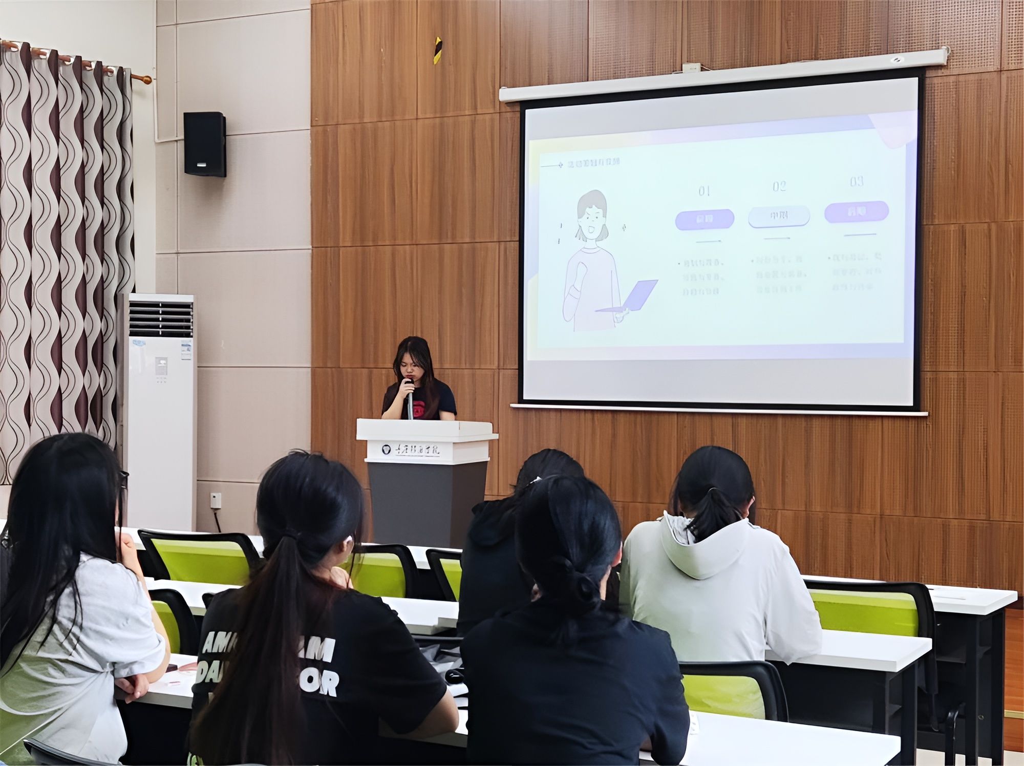 此次培训活动由来自外国语学院青年志愿者协会的干部曾静雪主讲。作为一种相对新颖的志愿项目,曾静雪同学巧妙地将热门赛事融入其中,激发同学们的兴趣,并从多个角度逐步深入地阐述剖析了赛会志愿服务这一项目的内涵及其价值。