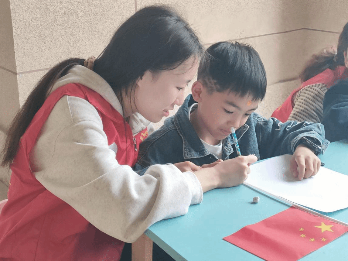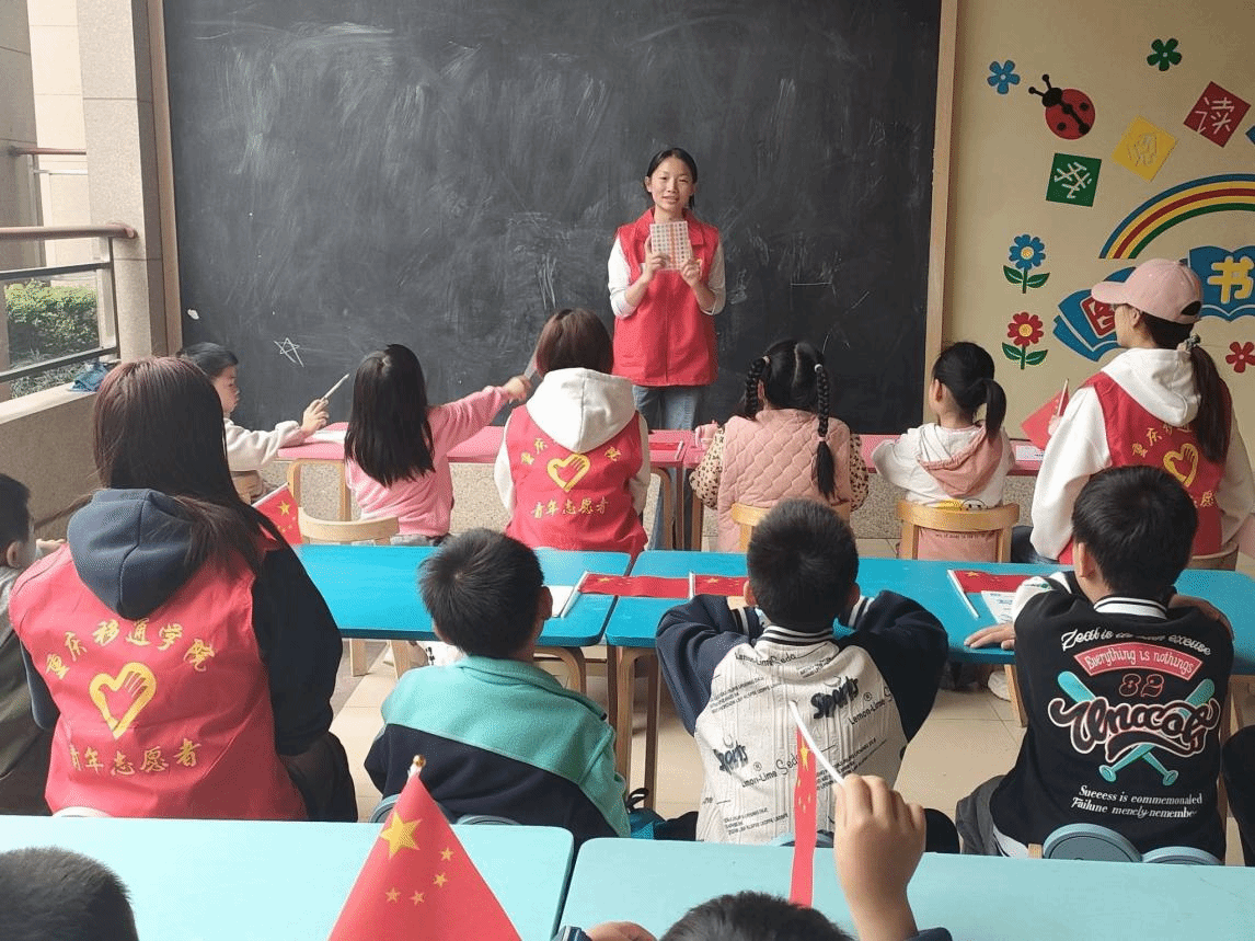 为推进大中小学思政课一体化建设,激发学生的爱国热情。结合学校3月雷锋月,3月30日重庆移通学院外国语学院青年志愿者协会蒲公英支队与习思想研习社联动开展关爱留守儿童的活动,该活动主要让社区小朋友们能够学习到中国红色精神。青年志愿者们用爱心汇聚力量,温暖少年儿童的内心,以爱国热情为基调,培育根正苗红新青年。