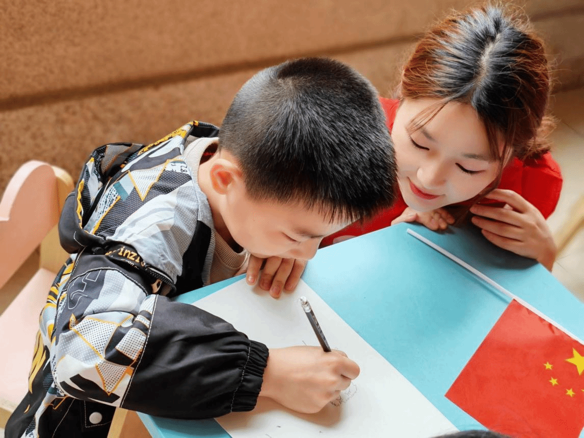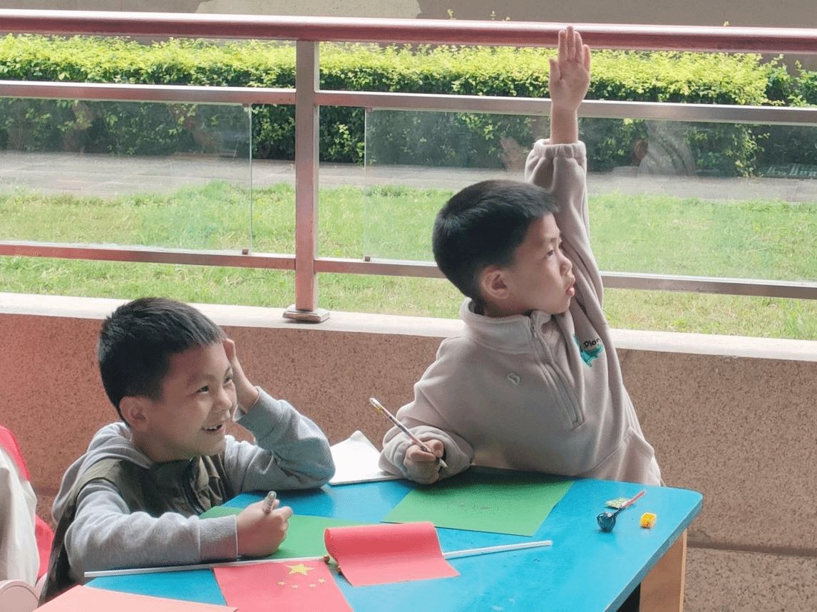 岁月泼墨,缀下繁花,时序轮转,丹心永固。志愿者们以树立文化自信为基点,前往泰吉同诚悦府为小朋友们带来爱国主义教育。习思想研习社的成员们结合在社团所学知识以及学校乐教乐学的校训育人理念,以知识竞答+讲座的方式为孩子们细细讲解五星红旗的来源以及设计理念。他们深入浅出地讲解五星红旗的历史、文化、艺术设计等方面的知识,激发孩子们的好奇心与求知欲。