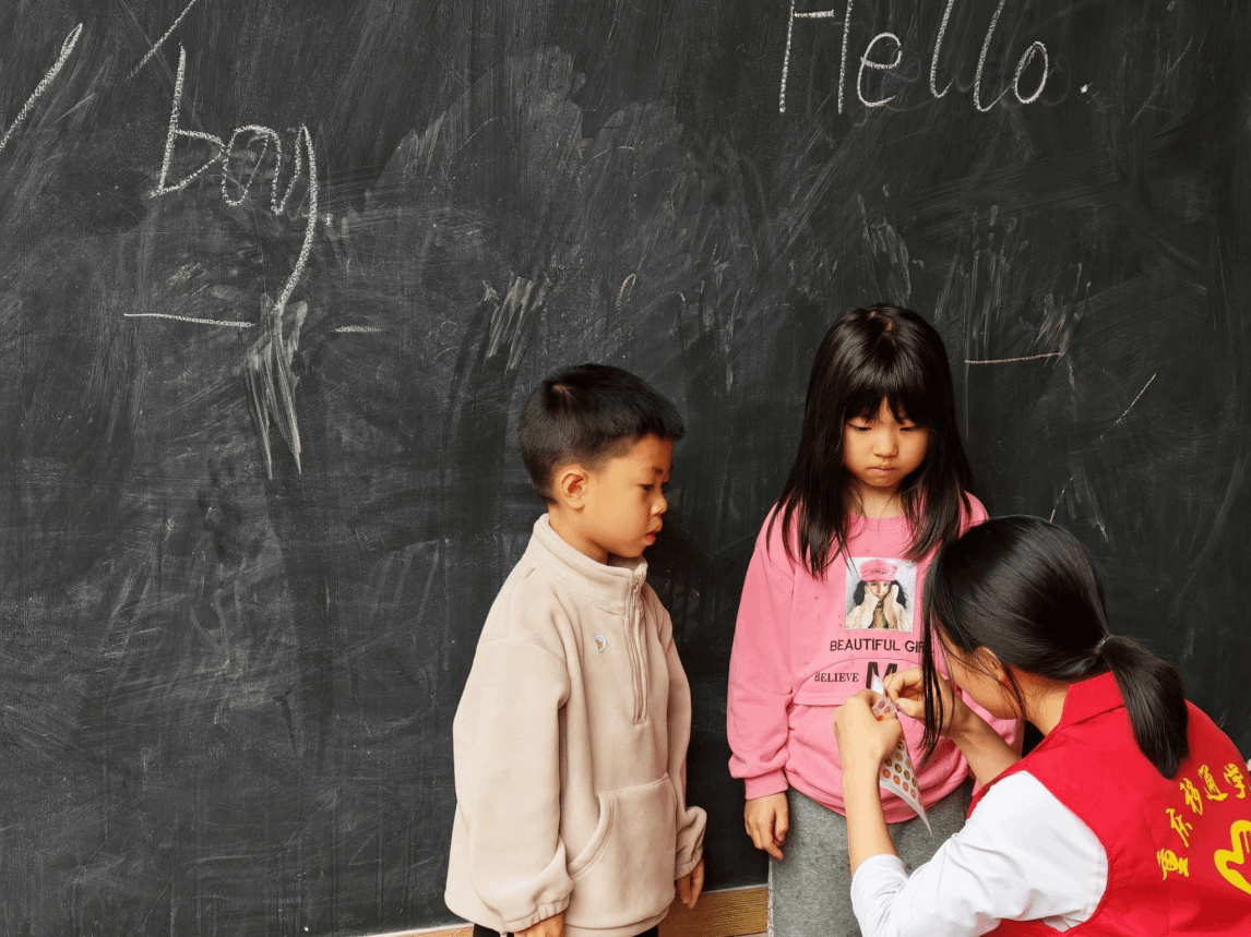 习思想研习社与外国语学院志愿支队的成员们与孩子们进行深入的文化交流。他们分享各自的学习经历、生活感悟,让孩子们通过交谈感受到不同文化背景下人们的智慧与情感。这种跨文化的交流,不仅拓宽孩子们的视野,也增强他们的文化认同感和自信心。