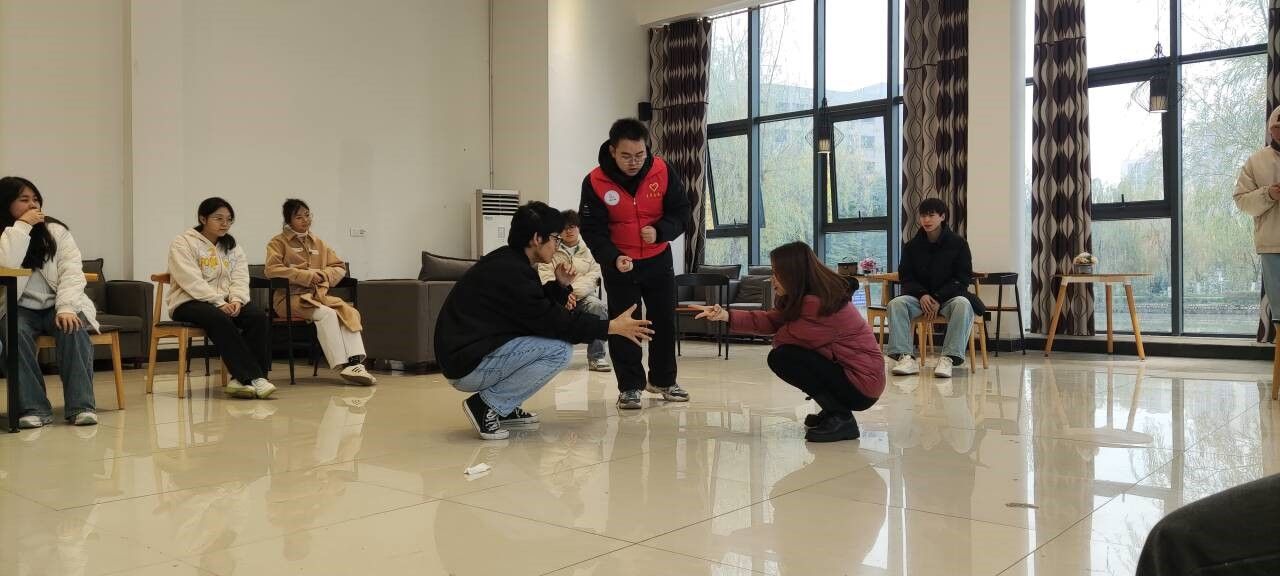 “轻舟已过万重山”。活动开始前,工作人员详细讲解了游戏规则,帮助同学们更好地了解熟悉活动。在游戏环节中,同学们自由组队,在询问加入团队时,眼神中的忐忑和紧张逐渐消失,鱼不离水,雁不离群。同学们团结一致,在游戏中大放异彩,周身散发的自信让内心的那点不确定变得明亮。在游戏过程中,同学们默契配合,提升了自我。赢了游戏的同学,激动拥抱。输了游戏的同学也并没有自怨自艾,而是积极的参与下一环节。同学们通过倾诉讲出自己的困惑和烦恼,勇气和友谊支持着他们前行。