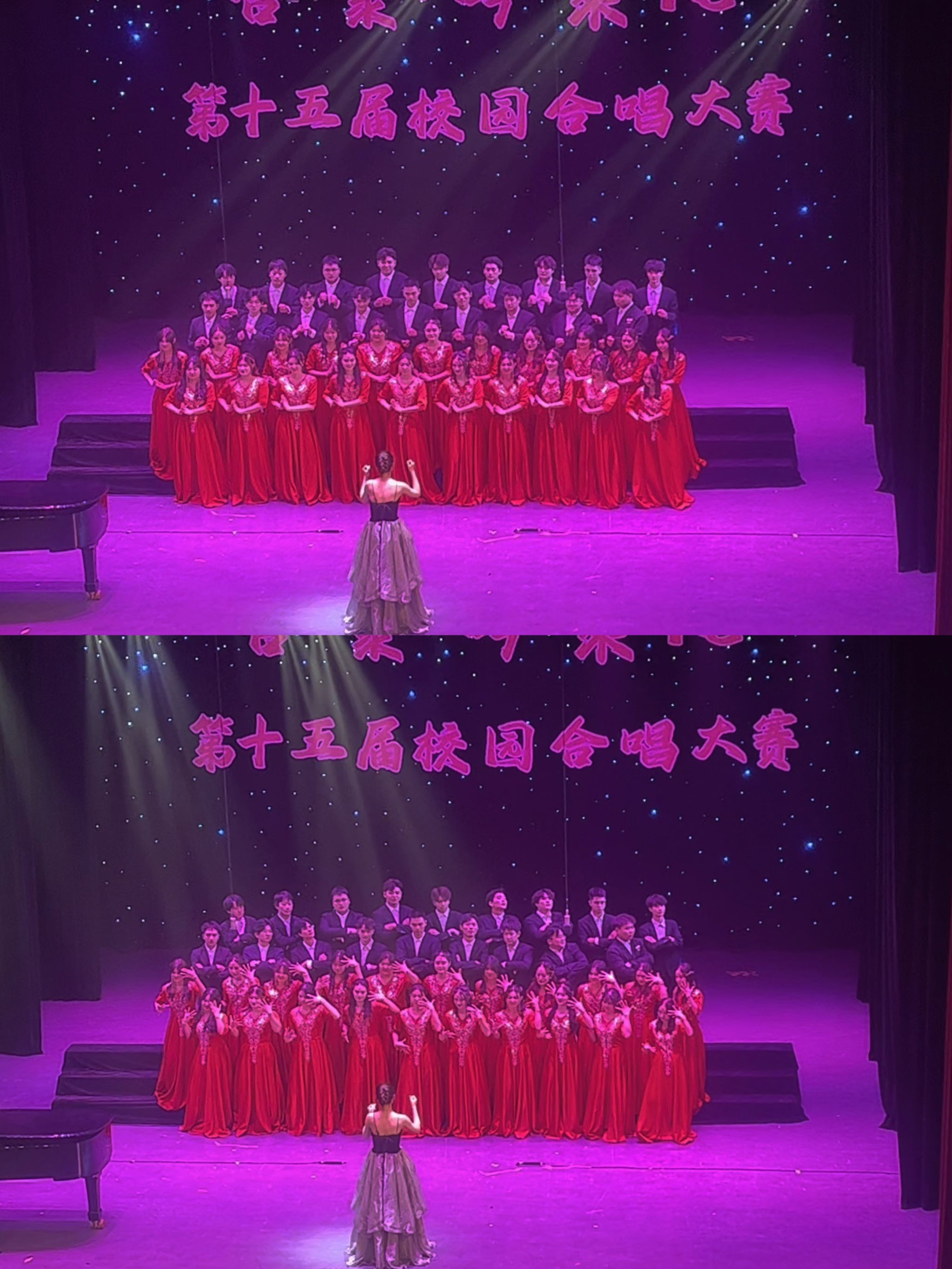 场外是汇成璀璨星河的荧荧灯海,台上是散发炽热与光亮的恒星。这次合唱大赛的成功举办,不仅提高了参赛选手们的音乐素养,也增强了学院的凝聚力和使命感。同学们在音乐中找到了共同的乐趣和追求,在合作中找到了共同的记忆和情感。让我们共同期待下一次的音乐盛宴,期待下一次的举校欢歌!