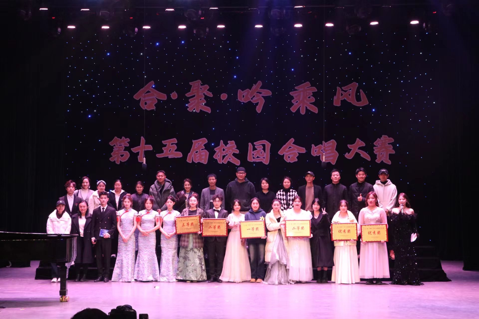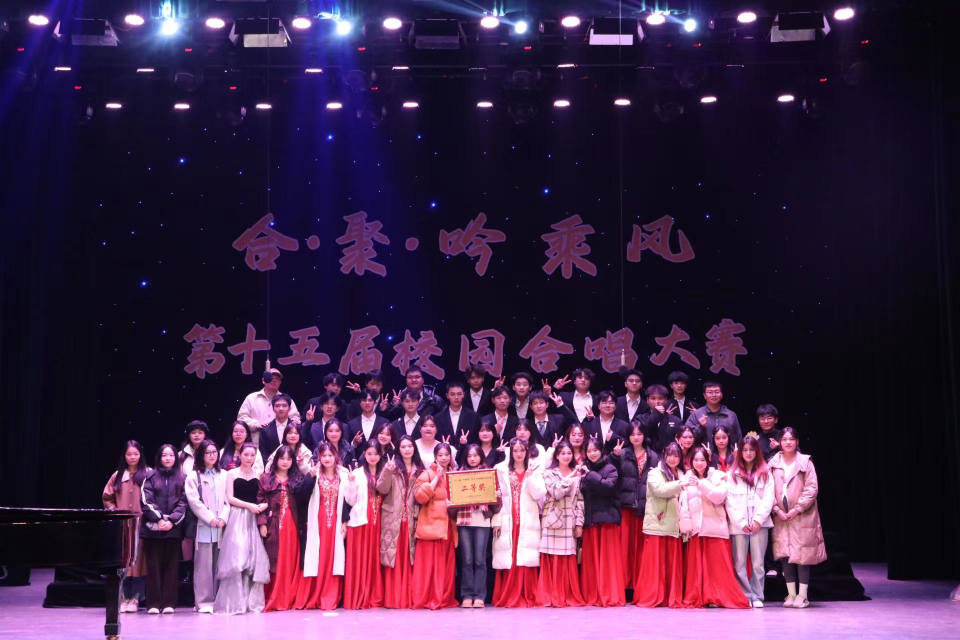 12月10日,第十五届“合·聚·吟乘风”校园合唱大赛在缤果大剧院圆满结束,恭喜外国语学院获得二等奖!