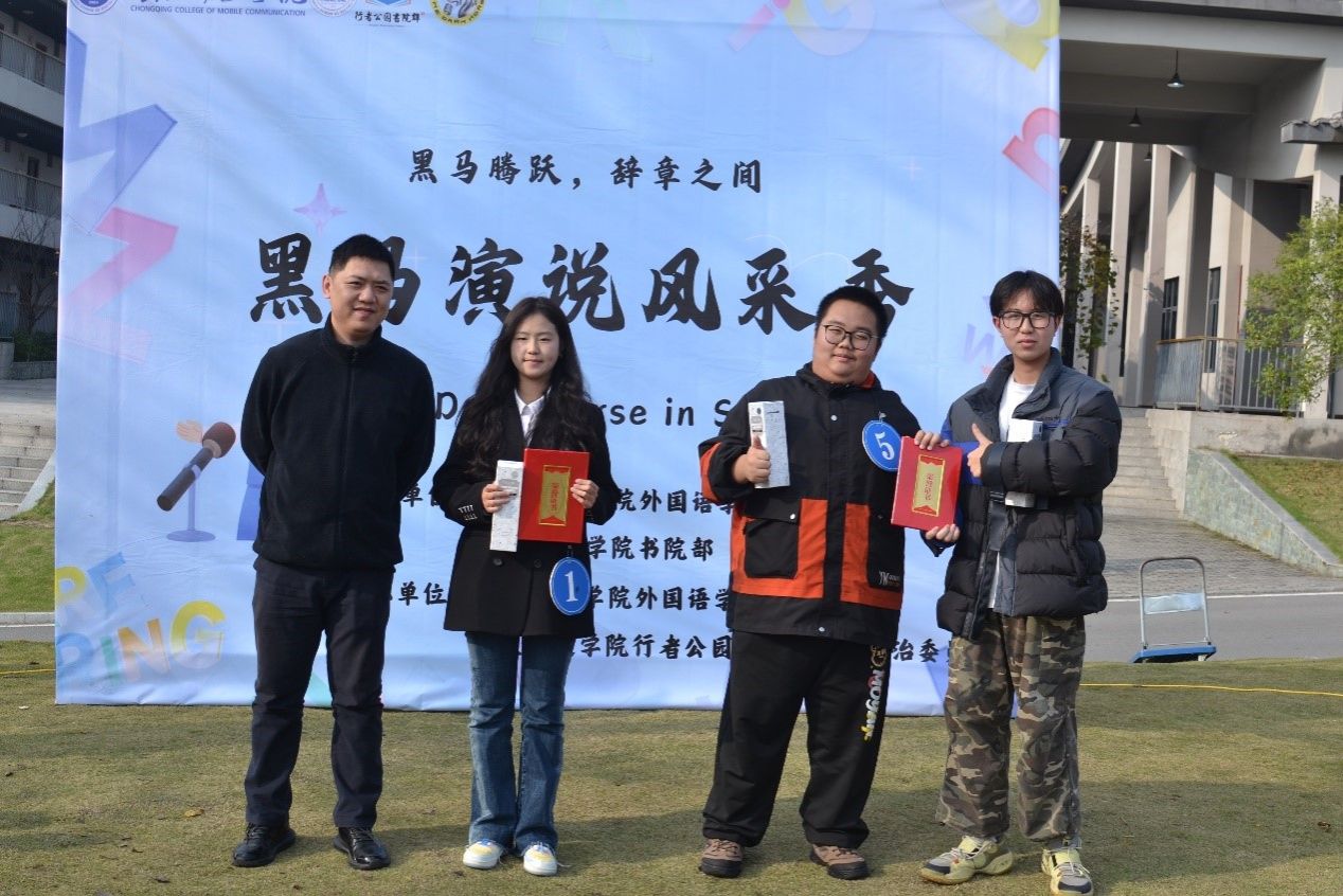 在本次的黑马演说风采秀中,郑昌敏同学凭借出色的表现,荣获了超级黑马奖项,成为了全场瞩目的焦点。李林峰和霍宣任小组以及李沁微同学也分别获得了最具人气奖,彰显了他们的卓越人气和实力。外国语学院卢镜囡副教授和李江鹏老师分别为这些优秀的选手颁发奖项。这一刻,荣誉与掌声齐鸣,为这些黑马选手们未来的道路加油鼓劲。
