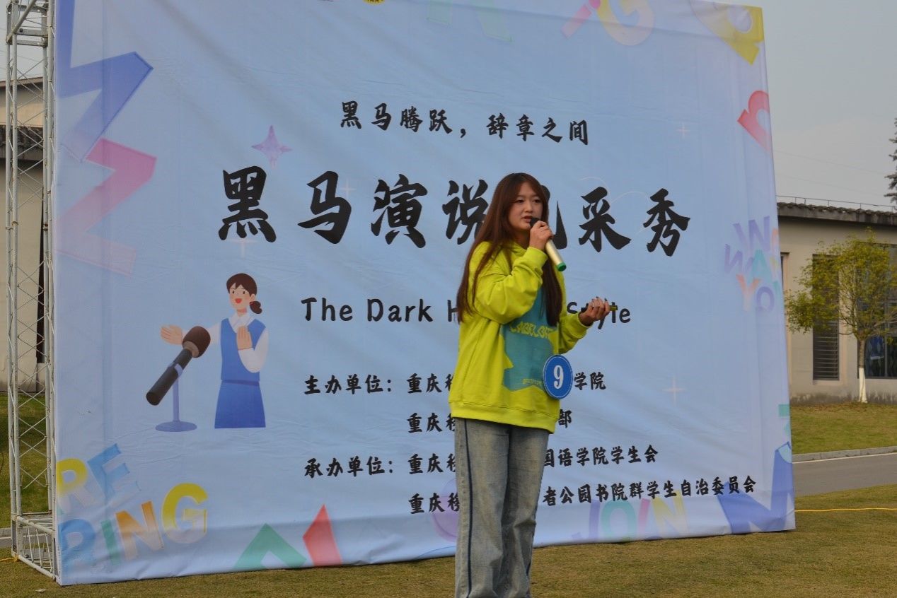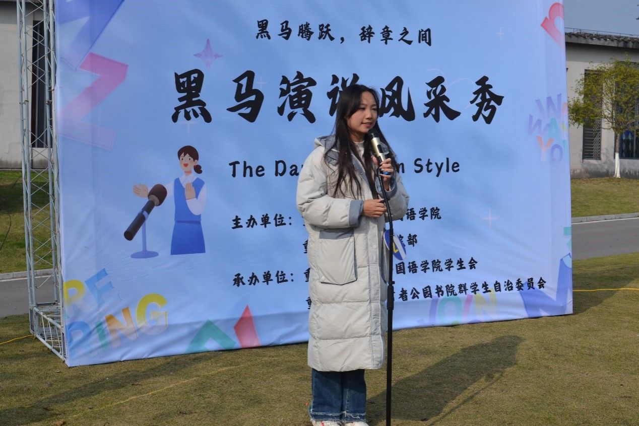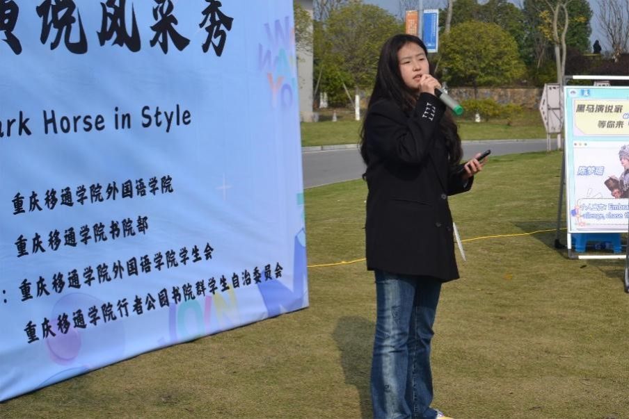 “Now,there is a trend called China-chic……”“For we are meant to be unique……” 英语之声留住了路过形形色色的目光和期待,只见一位位选手站在台前,慷慨激昂地发表着自己的见解。为丰富校园文化生活,展露同学们的才华与个性,激发和鼓舞同学们的英语学习热情。12月6日下午2点,外国语学院学生会外联部与行者公园书院群学生自治委员会在行者公园大草坪上联合举办了黑马演说家之“黑马演说风采秀” (The Dark Horse in Style)。
