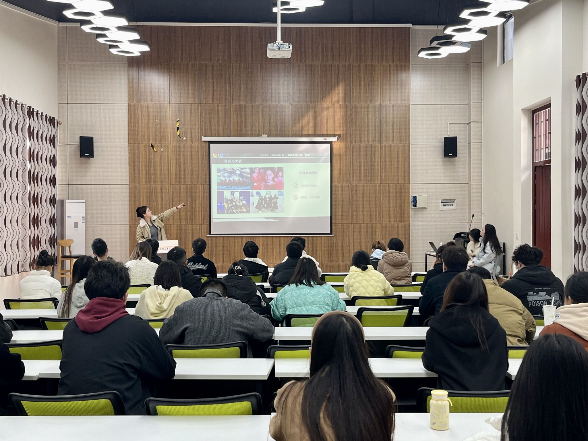 用行动点燃斗志,用心寻找完满之路。为帮助同学们在大学生活中找到奋斗的动力,使同学们能在丰富多样的艺术实践活动中塑造艺术思维,提升审美能力,不断陶冶情操,共青团重庆移通学院委员会和外国语学院团总支调研部特于12月6日在天渠111报告厅举办“舞为梦起,青春完满”《你好,达人》分享会(第5期)暨学长计划第四期活动,并邀请到外国语学院2021级冯宗锐同学作为本次分享会主讲人。