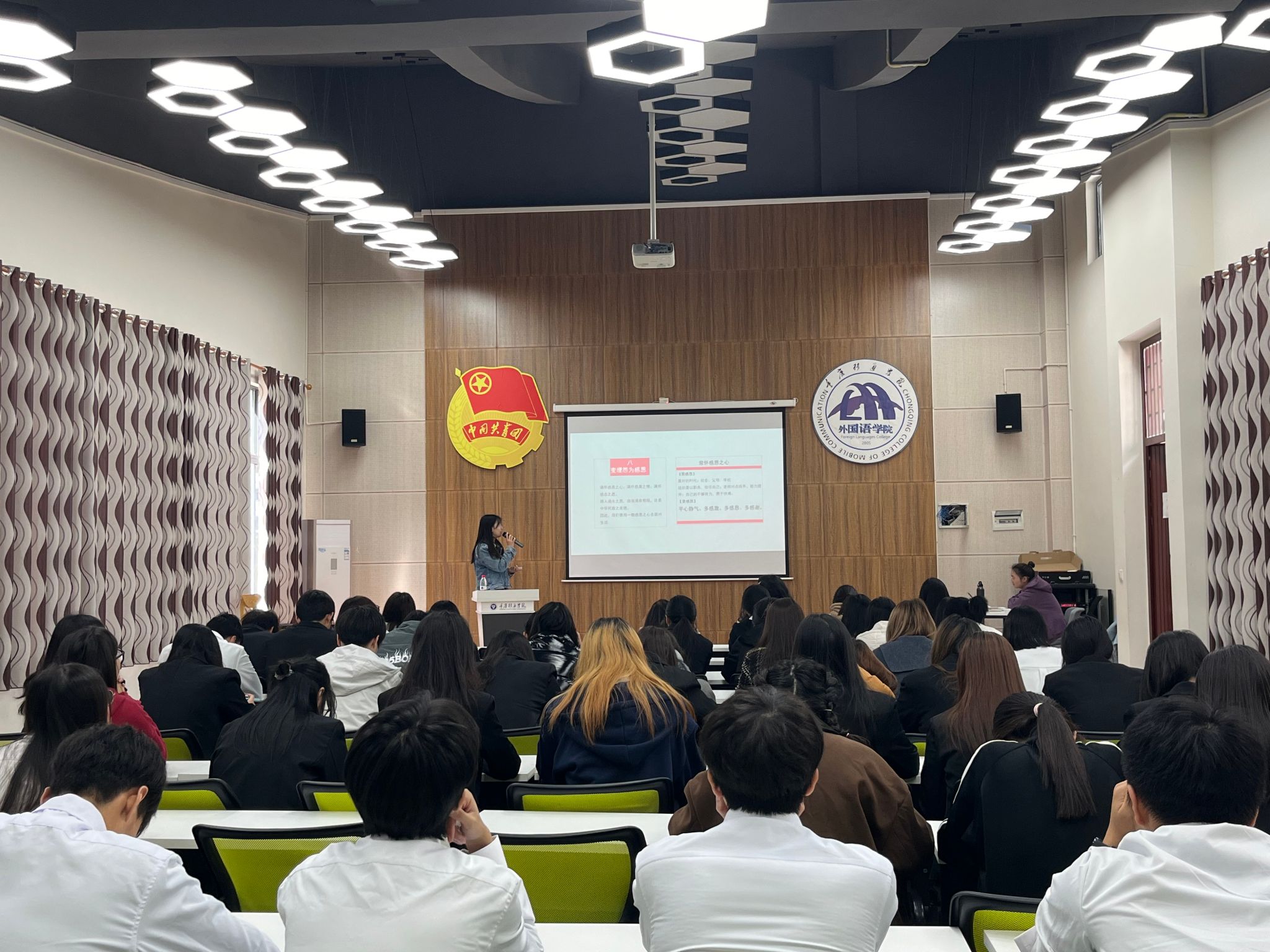 语言的目的是使人一看就明白,一听就记住,语言的唯一标准是准确。为让青马学员们在语言表达能力方面更加得心应手,提升个人的协调能力、组织能力,消除自我认知矛盾,让语言的长河生生不息。特外国语学院团总支于11月16日中午12:30,在天渠111报告厅开展“内通外达,感受语言的魅力”外国语学院第五期青马工程第二次理论培训,本次培训有幸邀请到校团委综合事务中心教师刘明璐老师作为本次培训的主讲人。