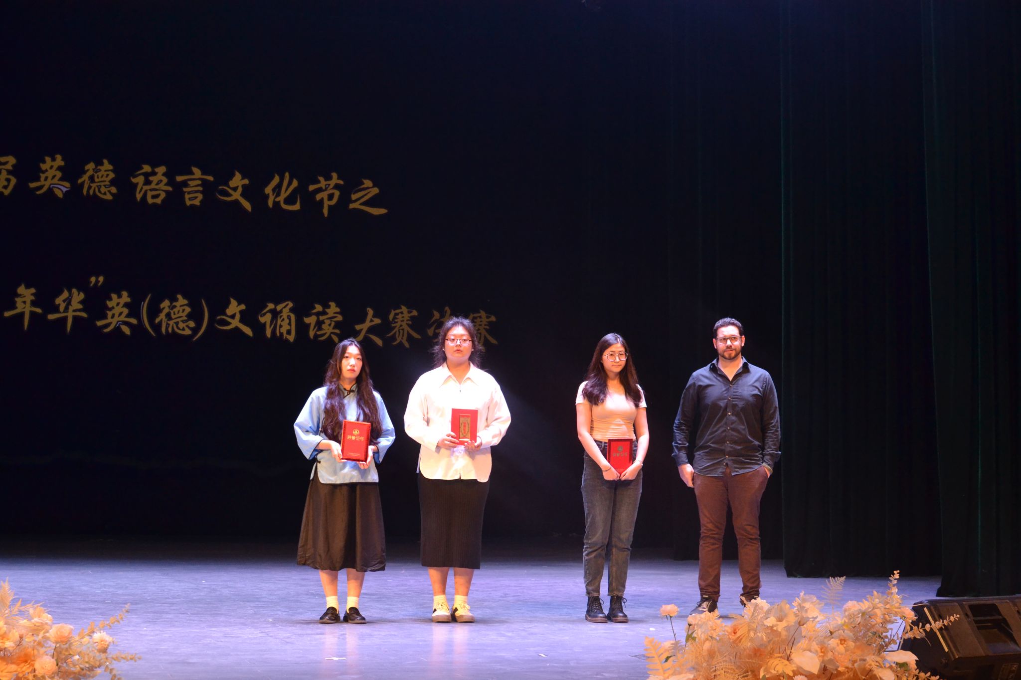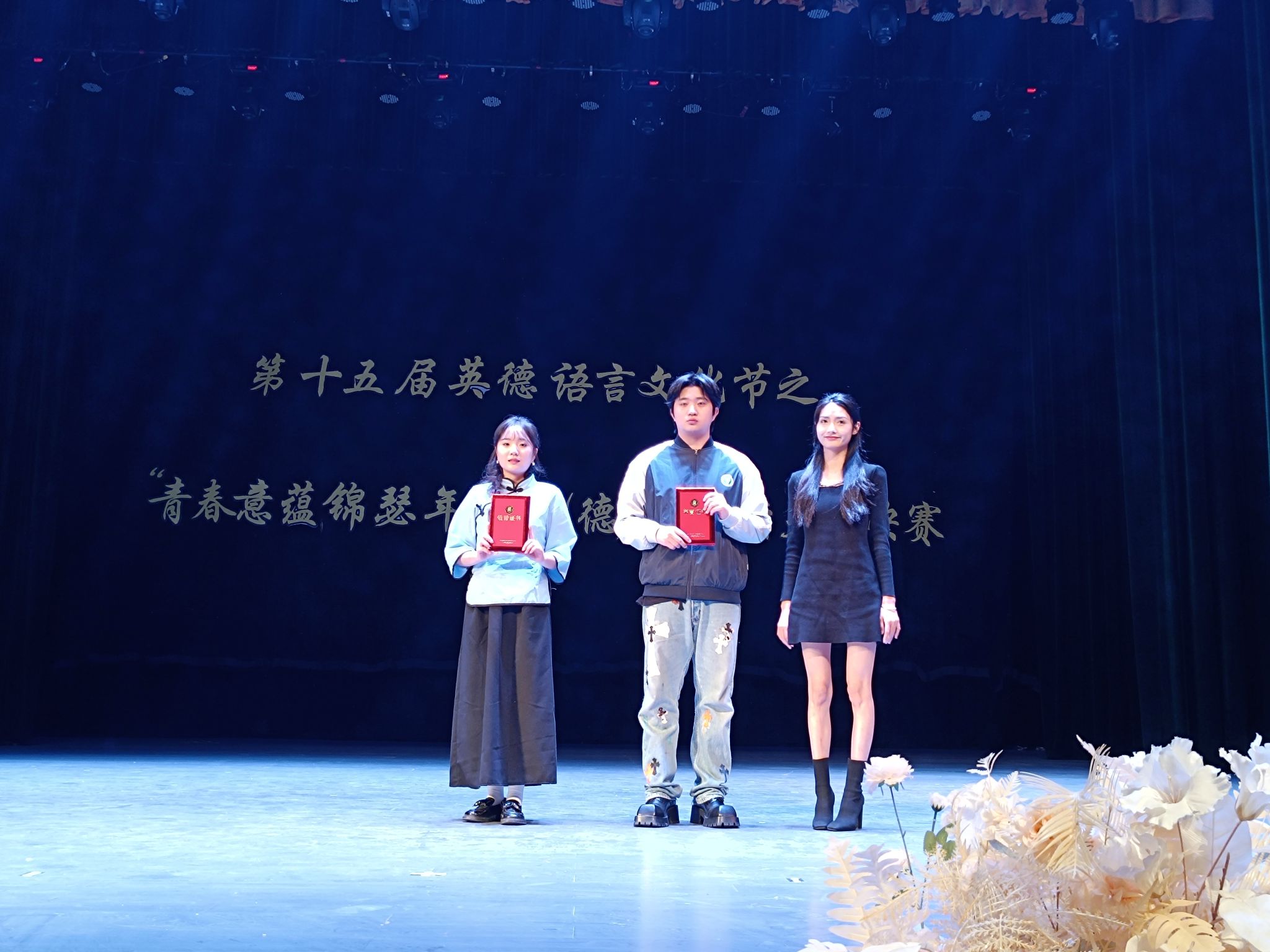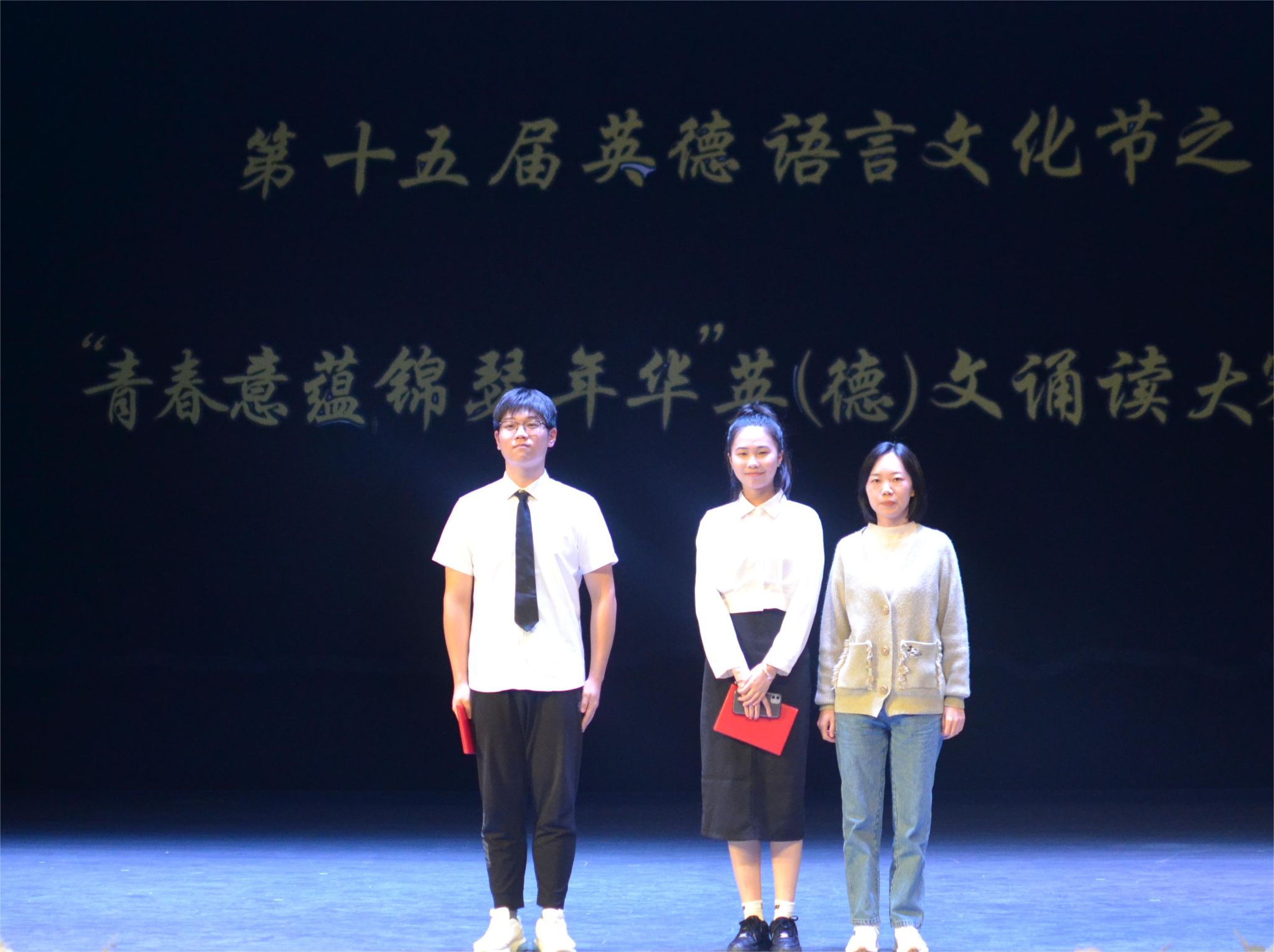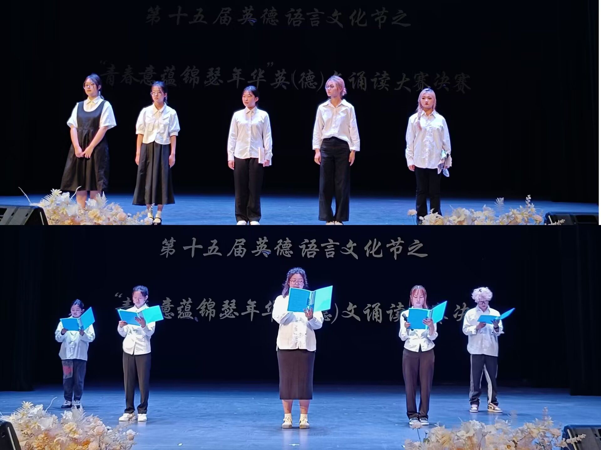 本次英德文诵读大赛获得英语和德语一等奖的队伍是:江枫渔火队和大乱斗队。