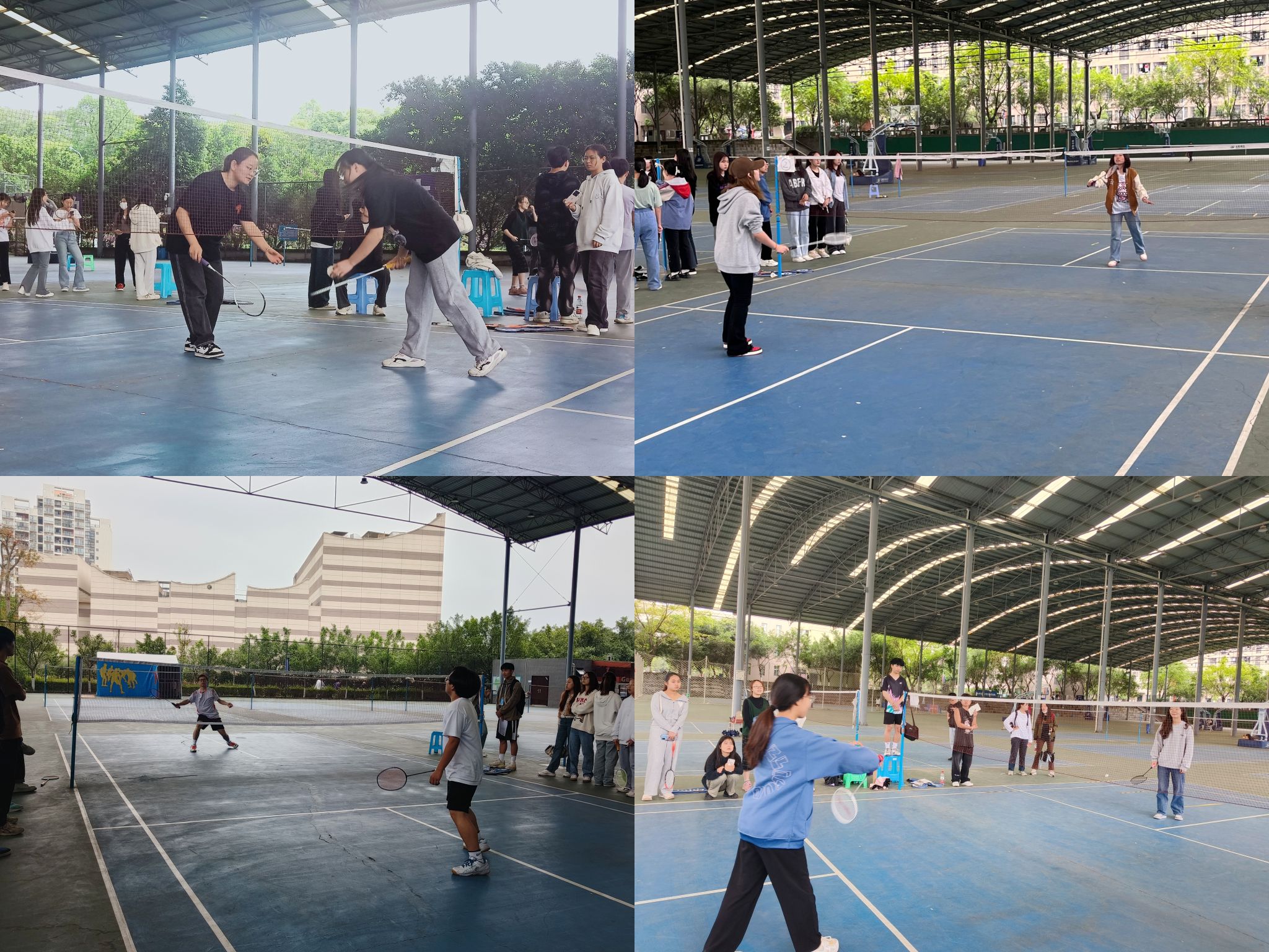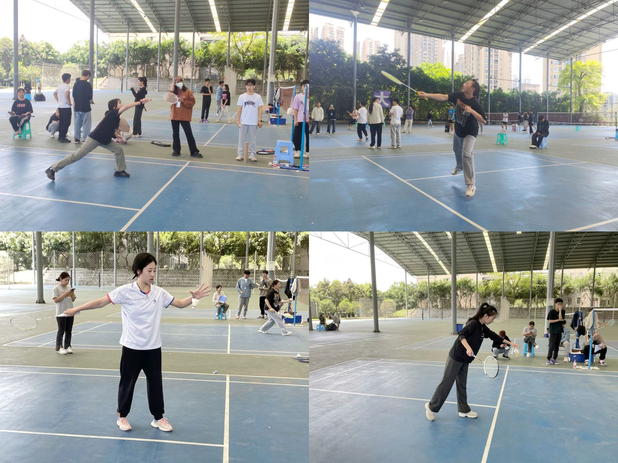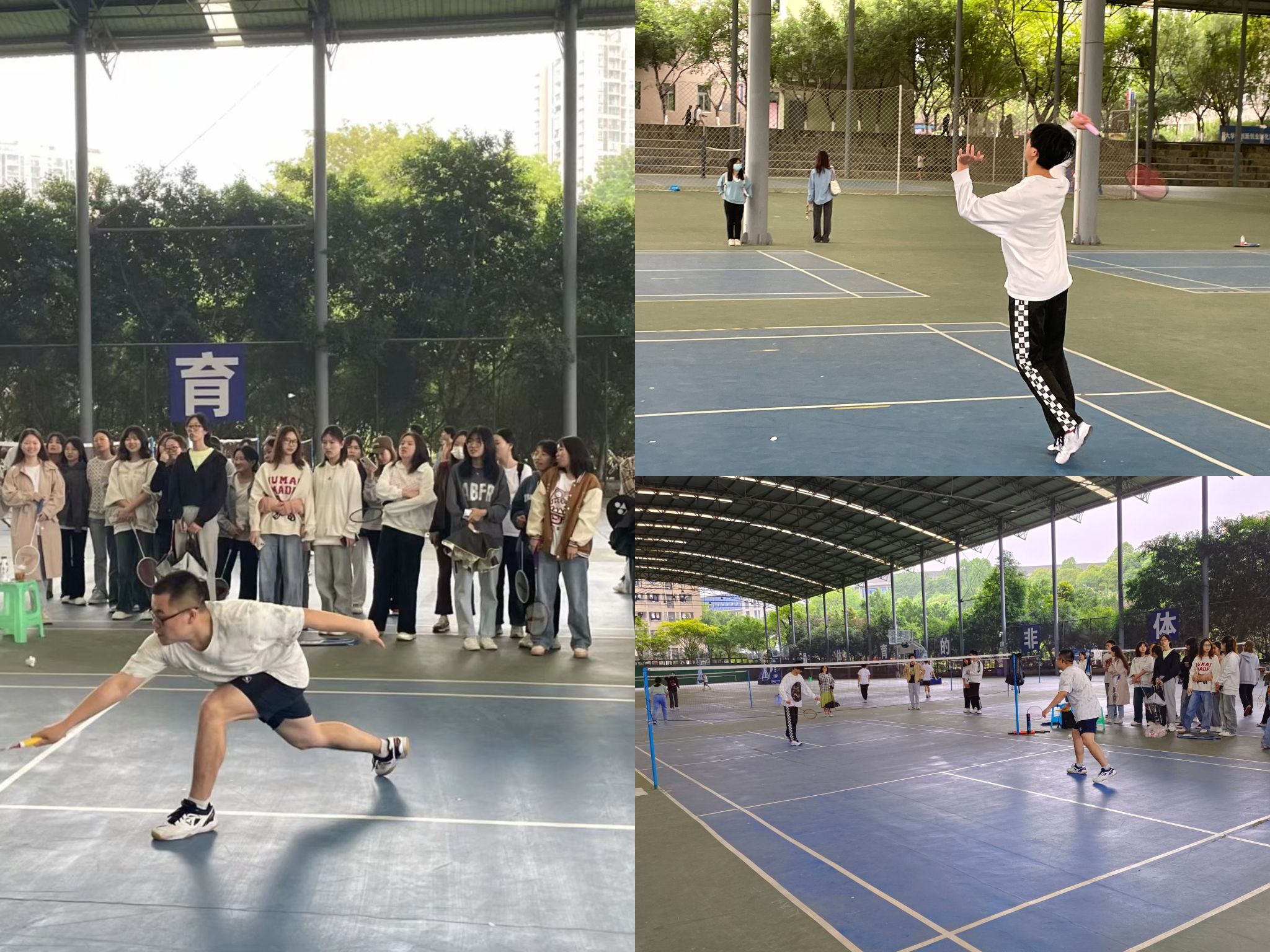 初赛可谓是惊喜连连。同学们斗志昂扬,信心满满走上场,面向对手,有着“黄沙百战穿金甲,不破楼兰终不还”般的气势与决心,势必要赢得比赛。羽毛球不停地来回跳动,僵持不下,同学们实力凸显,势均力敌。球场上,同学们你发我接,来来回回,目视前方,时刻做好接球的准备,凌空飞跃,如迅雷不及掩耳之势,挥拍一击,随着羽毛球的急速掉落,拿下一分!场下,观众们大声呐喊助威,加油声、掌声、欢呼声响彻整个羽毛球场。