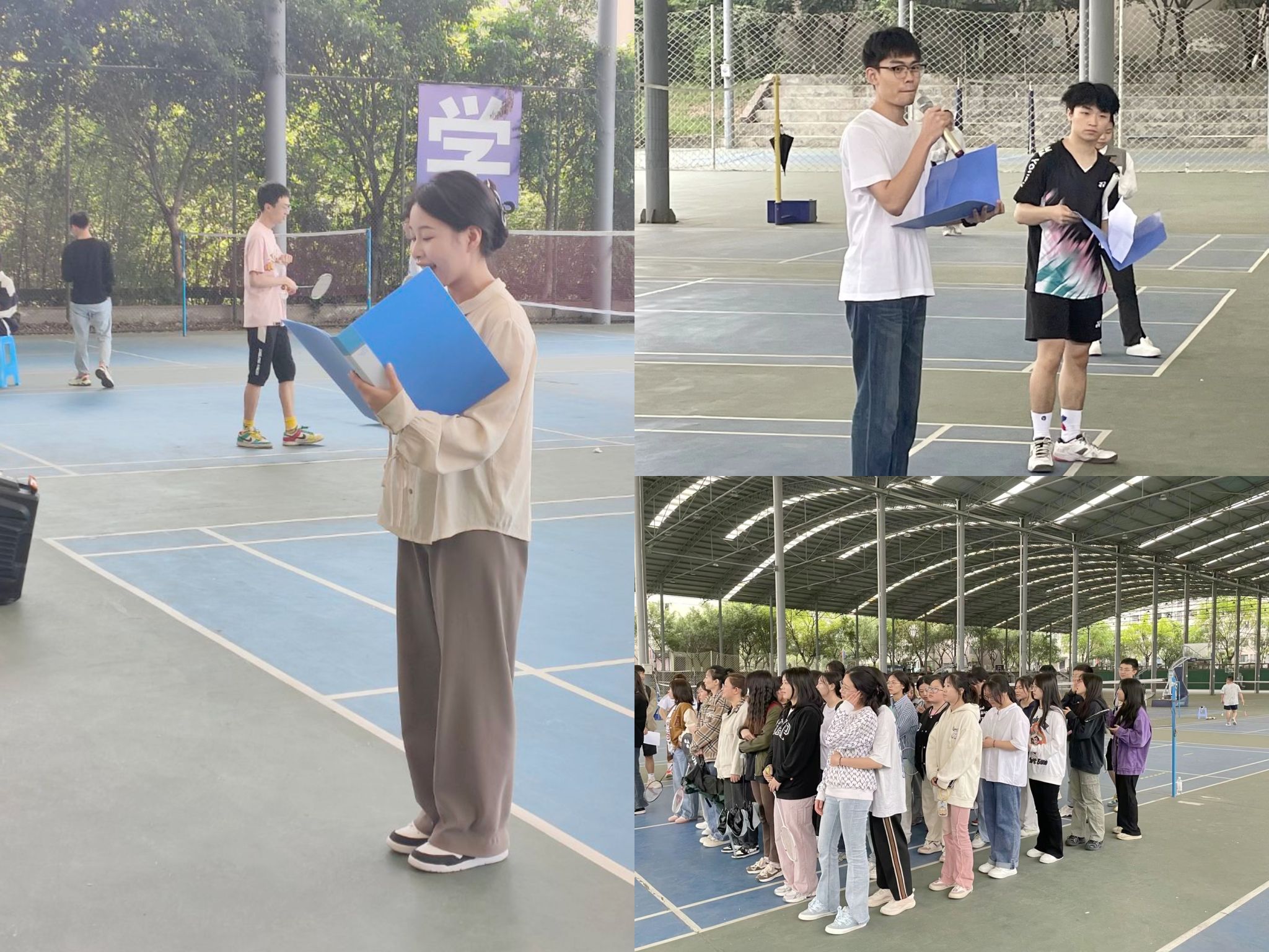 凉爽的微风带走四月,火红的暖阳迎来五月。天气渐热,慵懒相随,为唤醒和提高同学们运动的积极性,同时加深同学们之间的深厚友谊,外国语学院于5月10日至11日两天在风雨羽毛球场举行了第二届“舞动青春,谁‘羽’争锋”羽毛球比赛。特邀外国语学院团总支书记吕戈老师、外国语学院学生会体育协会指导老师阳果老师、2022级辅导员杨茂林老师莅临现场。