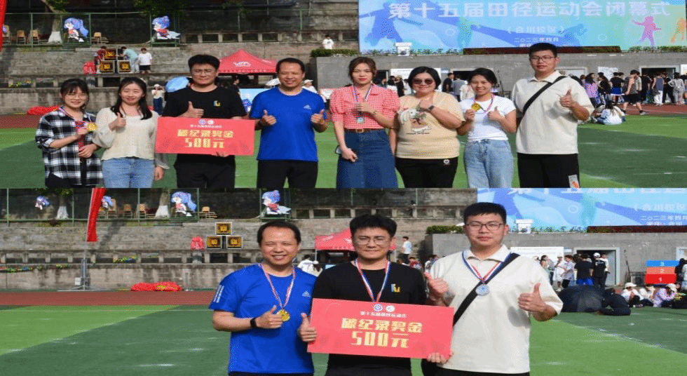 在两天的激烈角逐中,第十五届田径运动会圆满落幕。外国语学院教职工组卫冕第一,同时也获得了双道德风尚奖。我院万江、阳果老师分别打破了男子1500米、400米的记录;邹嘉老师荣获女子1500米第一名并打破女子800米记录;祝玮老师获得男子1500米第三名;吕戈老师获得立定跳远第一名;我院老师更是在第一天的旋风跑和长绳比赛中获得第一名的好成绩。