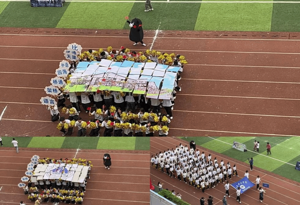 开幕式中,外国语学院方阵展现外院的特色以及外语学子的青春活力,“外语外语,无与伦比”外语学子用洪亮的声音喊出振奋人心的口号!几十号人的队伍迈着整齐的步伐,昂首挺胸。由外教Clive带领的外国语学院教工代表队热情的向全校师生打着招呼,外国语学院的整个队伍都显得活力满满!