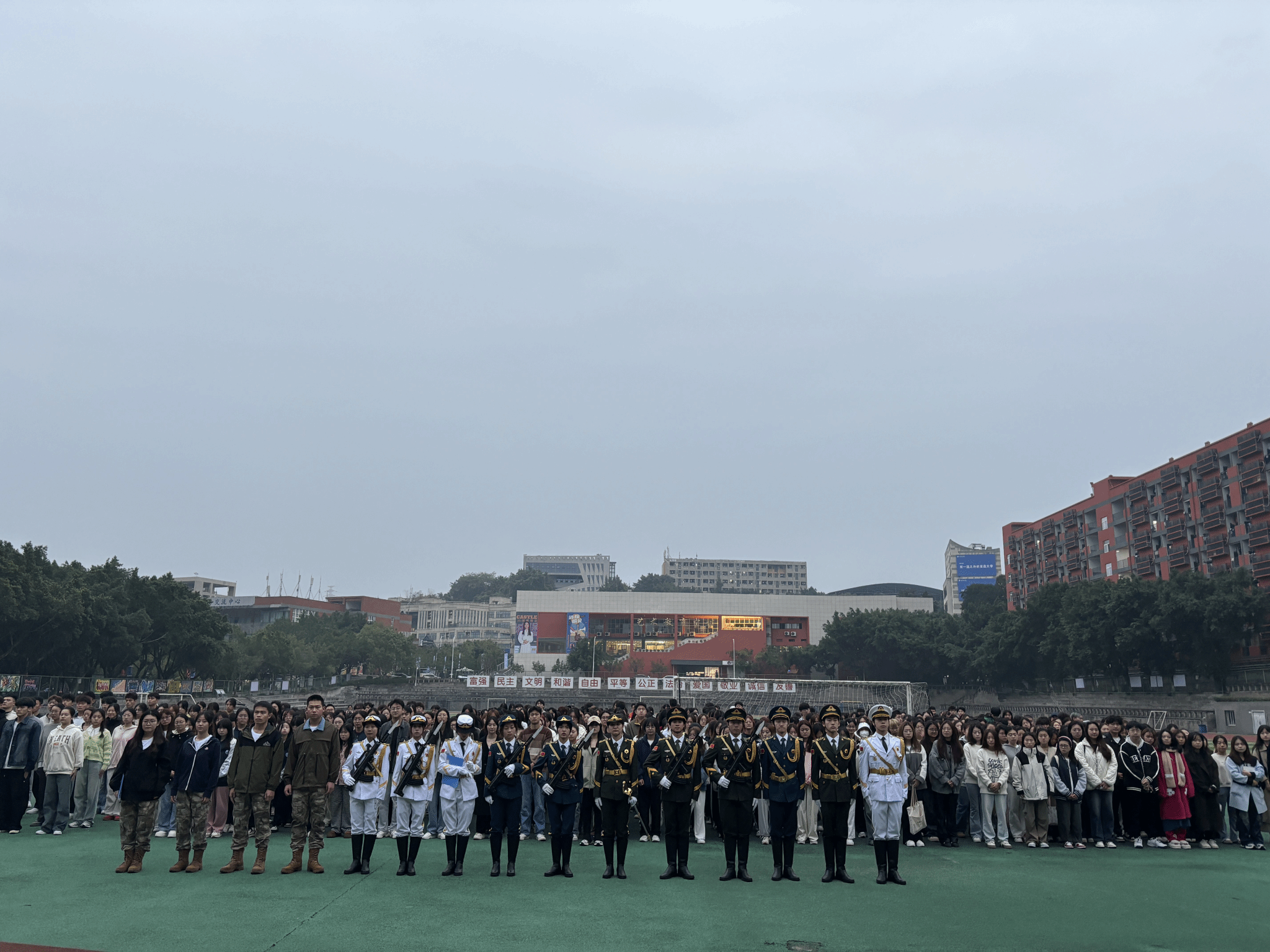 生在国旗下,长在春风里,人民有信仰,国家有力量,民族有希望,为提高师生爱国主义情怀,提高个人使命感和责任感,重庆移通学院外国语学院于11月11日早晨7点在南校区操场隆重举办了升国旗、奏国歌仪式。外国语学领导、2023级、2024级辅导员及全体学生共同参与了此次活动。