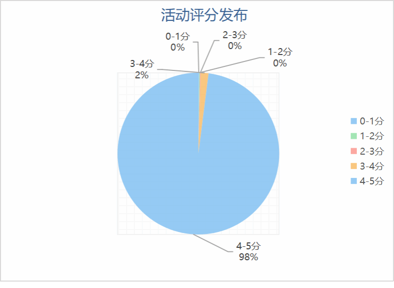 活动评价分数跨度介于0-5分,其中给出4-5分的人数发布最多。