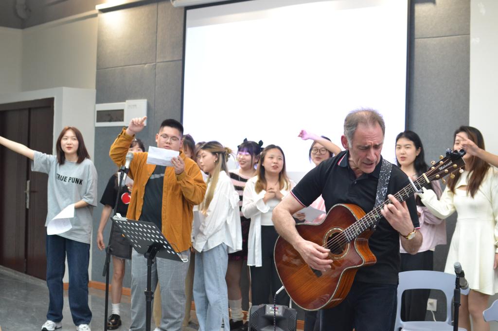 一个个音符、一阵阵旋律,引得同学们沉醉其中、走进音乐。第十三届英德语言文化节文化节之 “Clive’s Musical Salon”外教沙龙活动,通过音乐会的方式呈现,Clive动人的吉他演奏,将英德文化展开在学子的眼前,引得大家畅所欲言、不亦乐乎。让素不相识的我们连结在一起,感受到了音乐带来的愉悦与力量,让同学们在音乐的海洋中畅游。此次外教沙龙活动此次活动参与人数约50人。