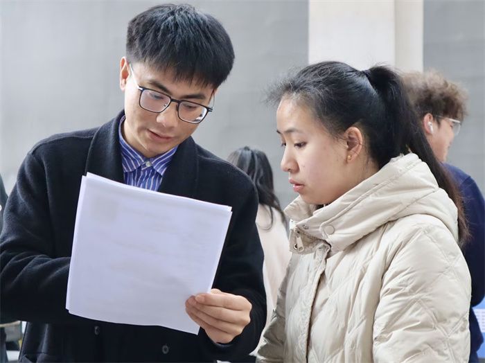 活动现场设置企业面试区和简历优化区两大区域。20家企业开展“一对一”现场面试,提供岗位300余个;10余名教师组成“简历诊断团”,为毕业生修改简历百余份。卢伯年老师和刘晓姝老师提出同学们要精简校园经历,突出以数字为证的显著成果。例如,将“参与社团活动”改为“率领5人团队策划3场校级赛事,吸引800+名学生参与”。依据应聘岗位的具体要求,将与岗位相关性强的内容重点突出。若公司重视创新能力,则优先展示打破常规解决问题的实例;若强调执行力,则着重描述按时且超额完成项目的典型案例。