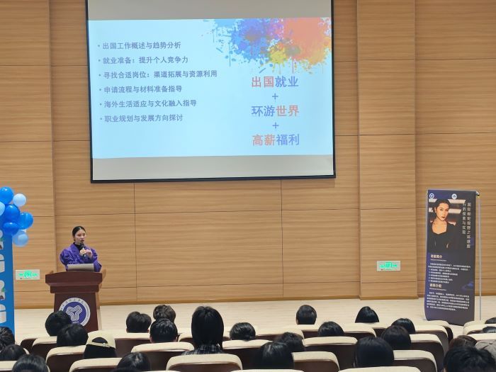 越来越多的国内企业开始拓展海外市场,这就需要具备外语能力的人才来协助企业进行国际业务的开展。外语专业毕业生可以在企业的国际部门、海外分支机构等工作,参与市场调研、商务谈判、项目管理等工作,为企业的国际化发展提供支持。本次活动我们有幸邀请到地中海国际邮轮公司邮轮行政总管-------张钟予老师,为同学们开展“国际邮轮视野之环行的探索与实现讲座”。
