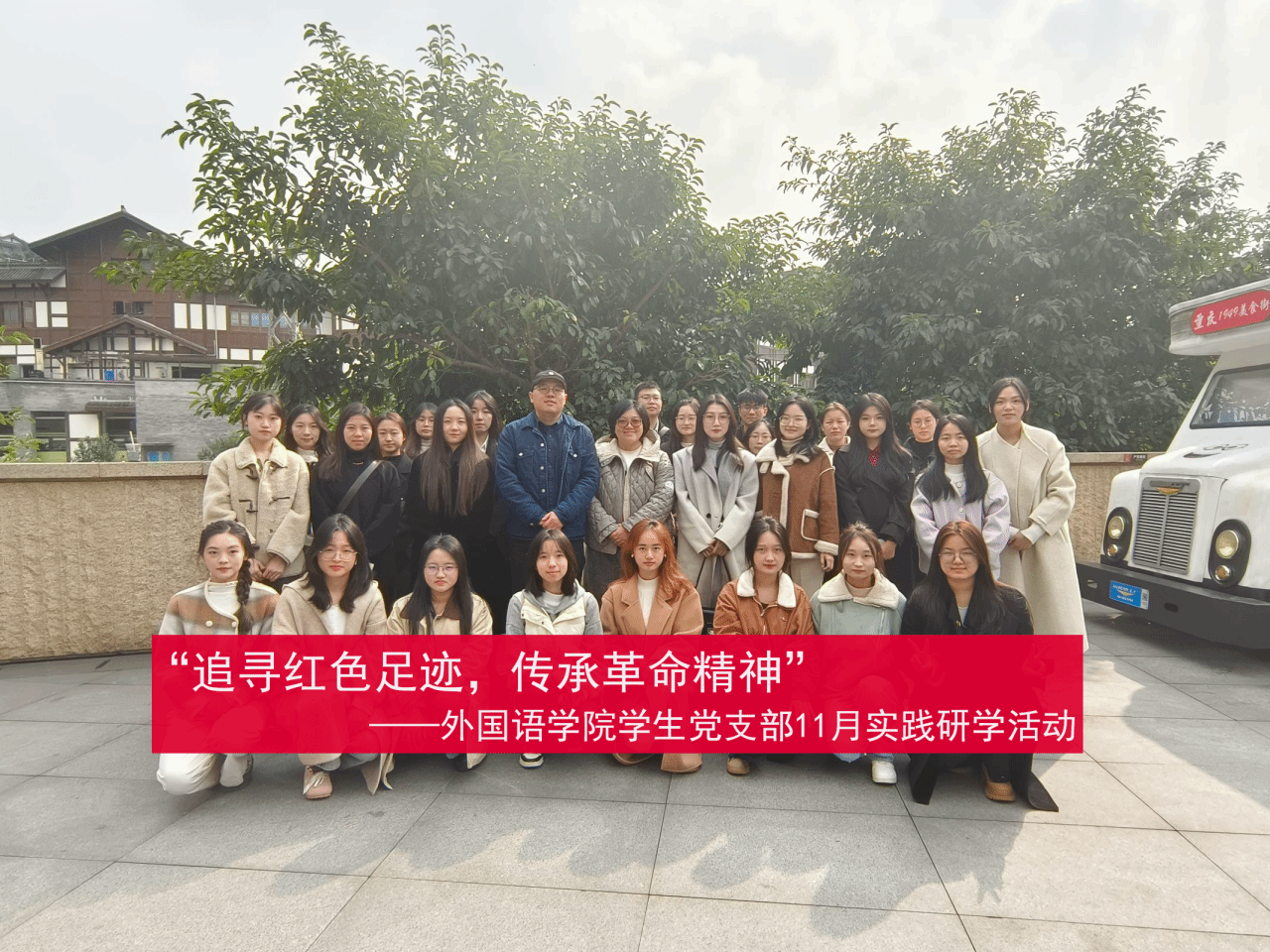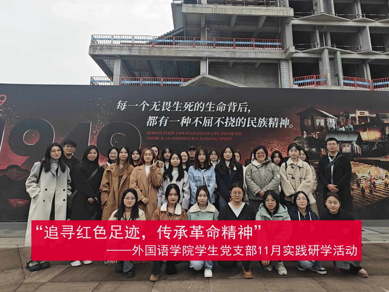 为追寻红色足迹,缅怀革命先烈,传承红色精神,2024年11月22日,外国语学院学生党支部组织了一场意义非凡的实践研学活动,外国语学院学生党支部全体师生党员一同前往渣滓洞监狱旧址、白公馆参观学习和观看《重庆1949》大型红色舞台剧。本次实践研学活动,旨在通过实地参观和舞台直观冲击,深入了解革命历史,感受革命先烈的英勇事迹,进一步激发党员们的爱国热情和奋斗精神。