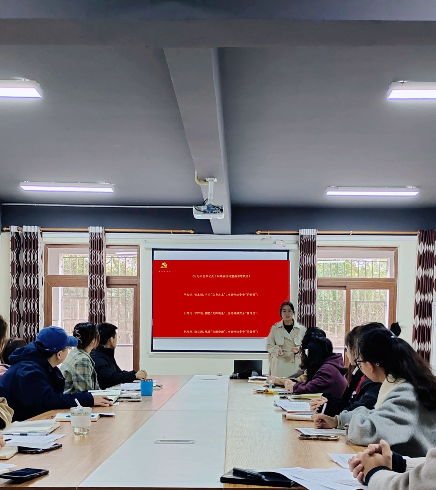 活动最后,书记作总结讲话,强调党员同志要严格以党员标准来要求自己,养成良好行为习惯、工作习惯、安全习惯,提高执行标准,坚决杜绝网上不良舆论发言,营造良好网络氛围。
