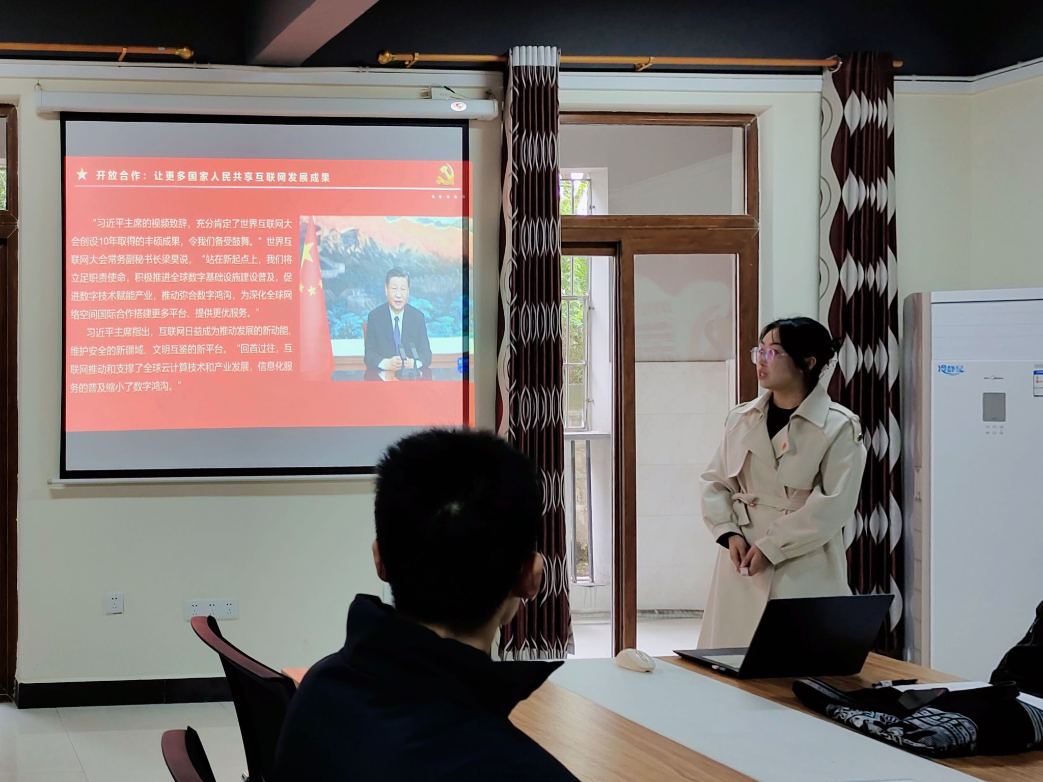 2023年11月8日上午,国家主席习近平向2023年世界互联网大会乌镇峰会开幕式发表视频致辞,科学分析全球互联网发展治理面临的新形势新要求。为携手推动构建网络空间命运共同体,外国语学院党支部于2023年11月23日14:30,在荷悦112会议室开展“聚焦网络空间安全,共建网上精神家园”党支部主题党日活动。本次活动由屠建丽同志主持,外国语学院学生党支部教师党员、部分在校学生党员参与本次会议。